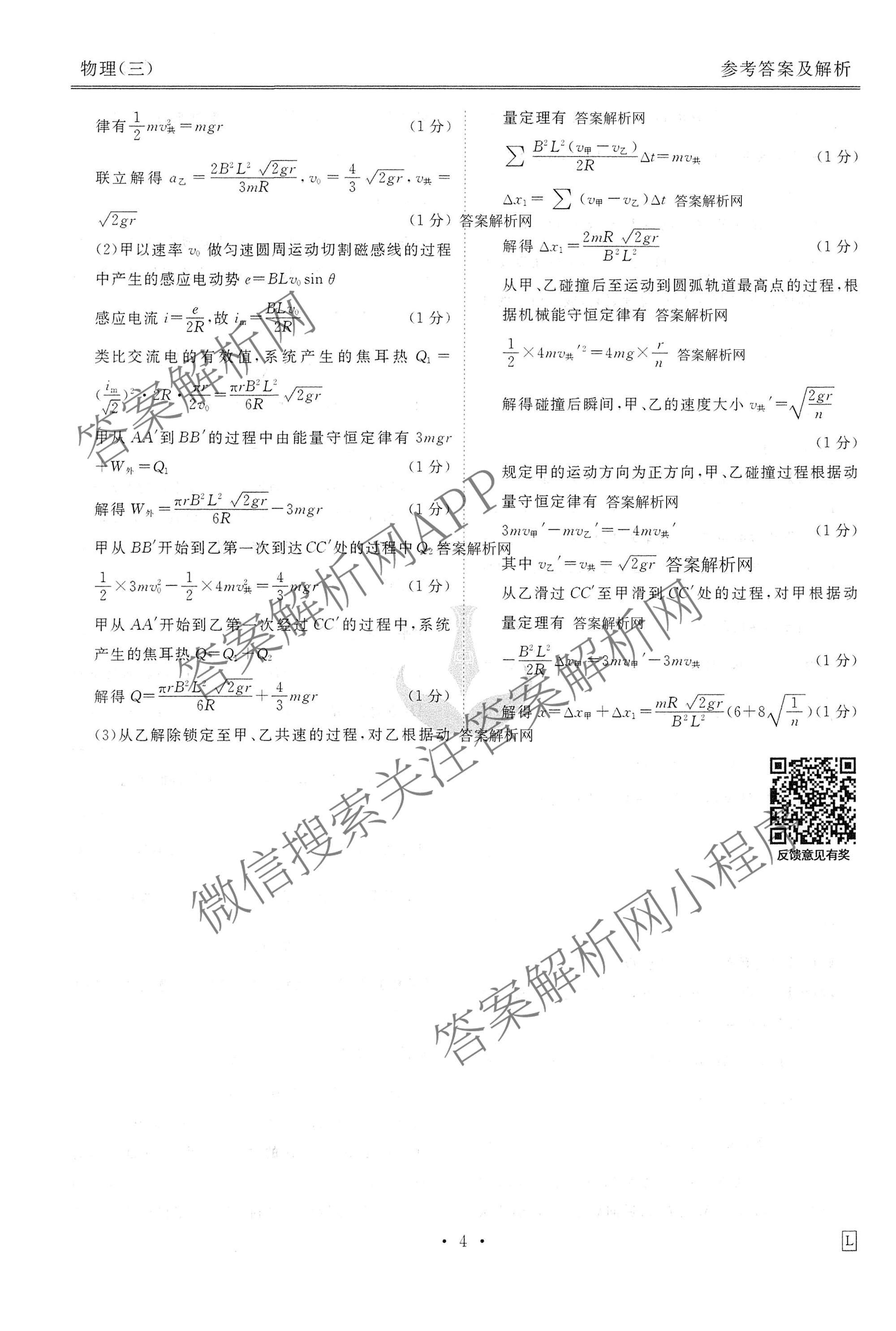 [高三][衡水金卷先享题]·调研卷·2026年普通高中学业水平选择性考试模拟(三)3物理(L)答案