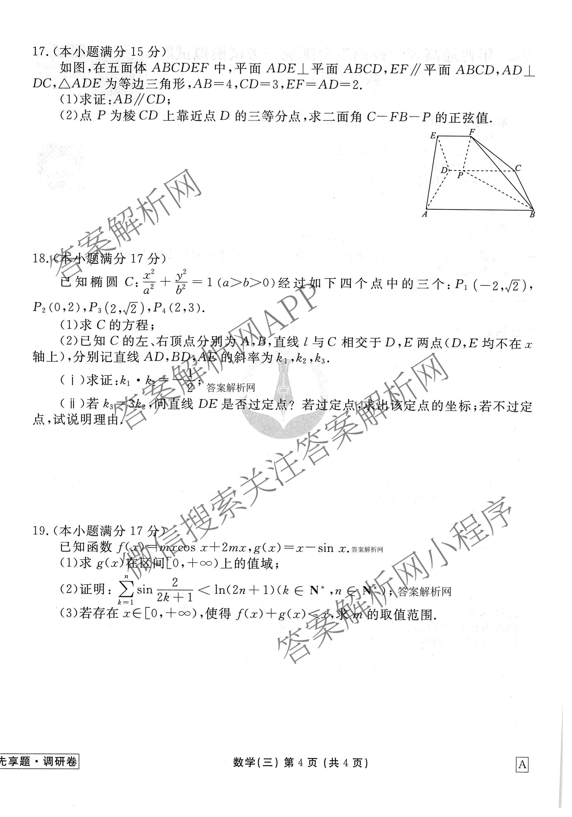 衡水金卷先享题·调研卷·2026年普通高等学校招生全国统一考试模拟试题(三)3数学(A)试题,目前衡水金卷先享题答案网已经汇总了衡水金卷先享题·调研卷·2026年普通高等学校招生全国统一考试模拟试题(三)3数学(A)试题的各科答案和试卷,获取更多衡水金卷先享题答案解析,请在关注本站。