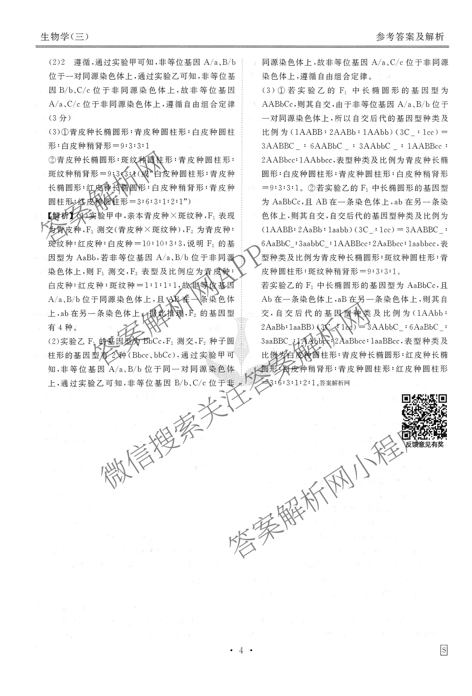 [衡水金卷先享题]调研卷2026年普通高中学业水平选择性考试模拟(三)3生物(S)答案
