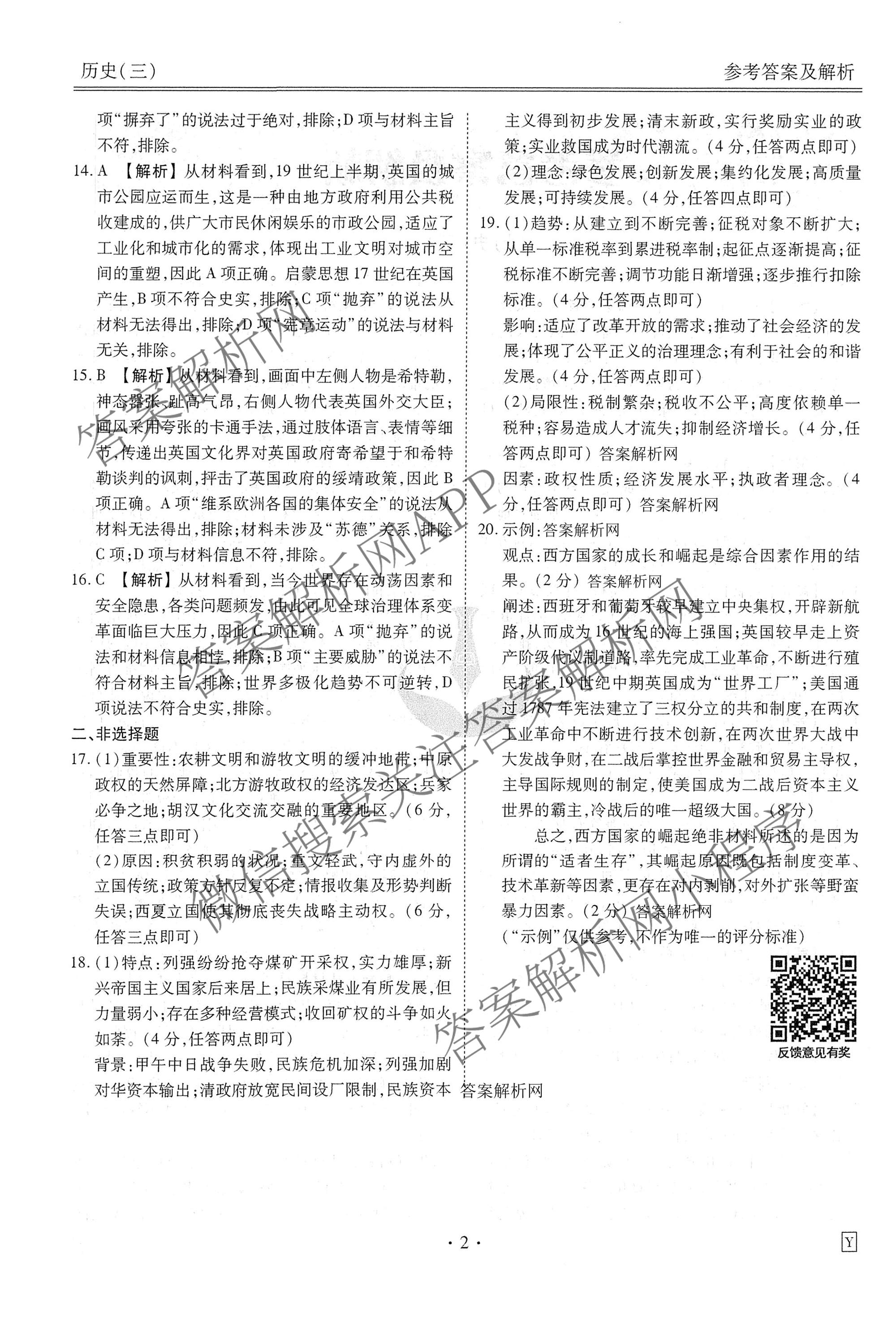 - (高三)衡水金卷先享题调研卷2026年普通高中学业水平选择性考试模拟试题(三)3历史(AH)答案