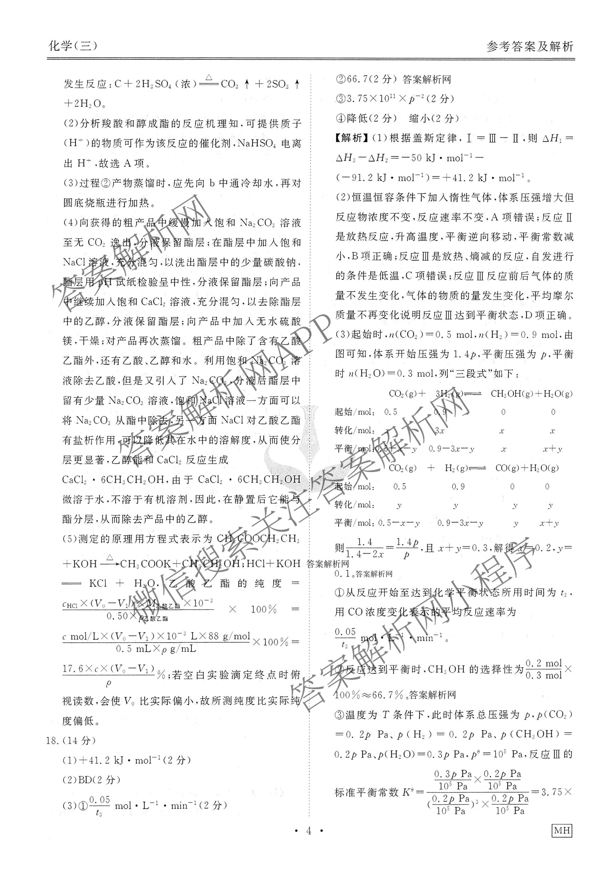 - (衡水金卷先享题)调研卷2026年普通高中学业水平选择性考试模拟(三)3化学(MH)答案