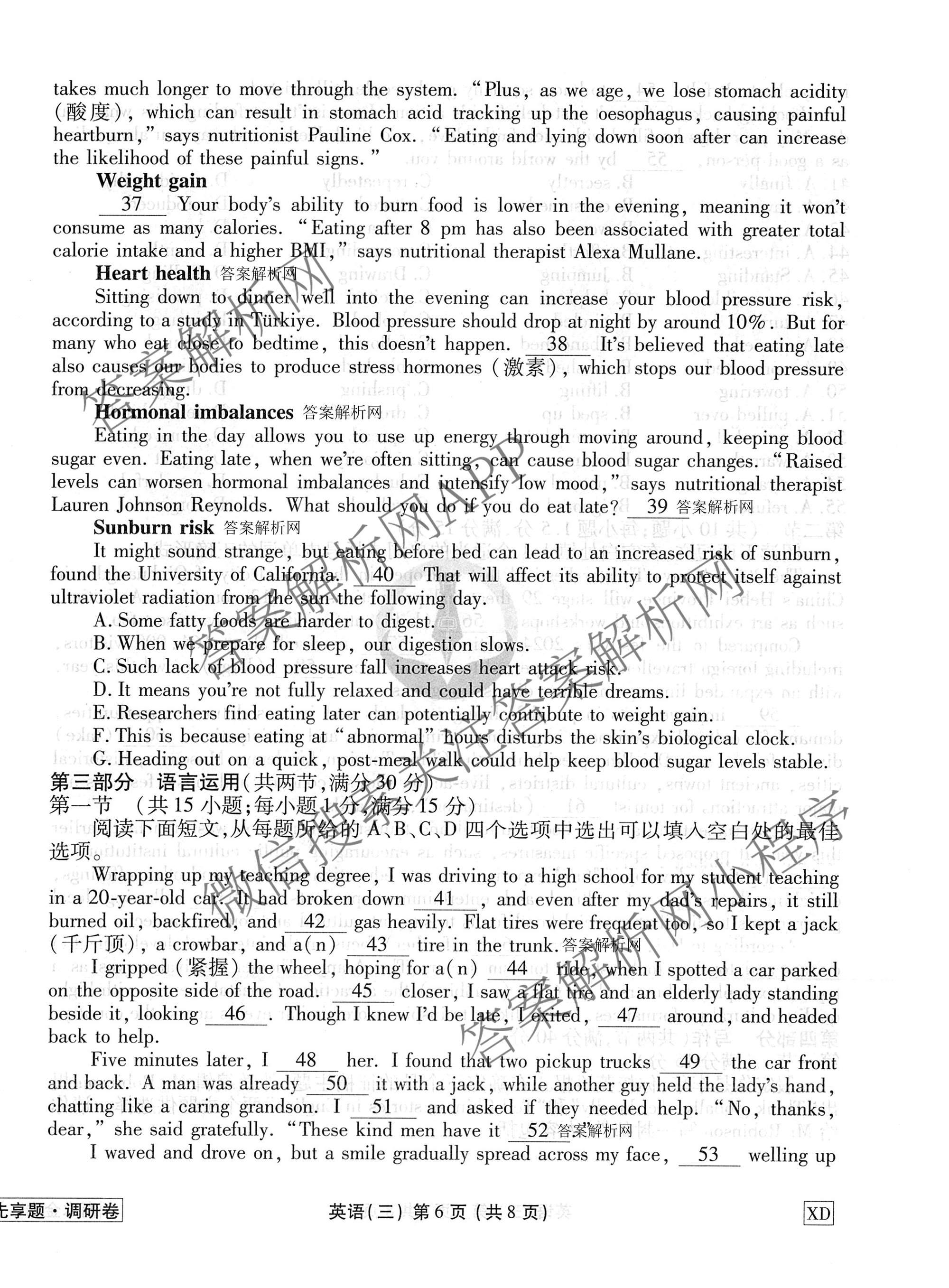 - [高三](衡水金卷先享题)调研卷2026年普通高等学校招生全国统一考试模拟(三)3英语(不含听力)答案