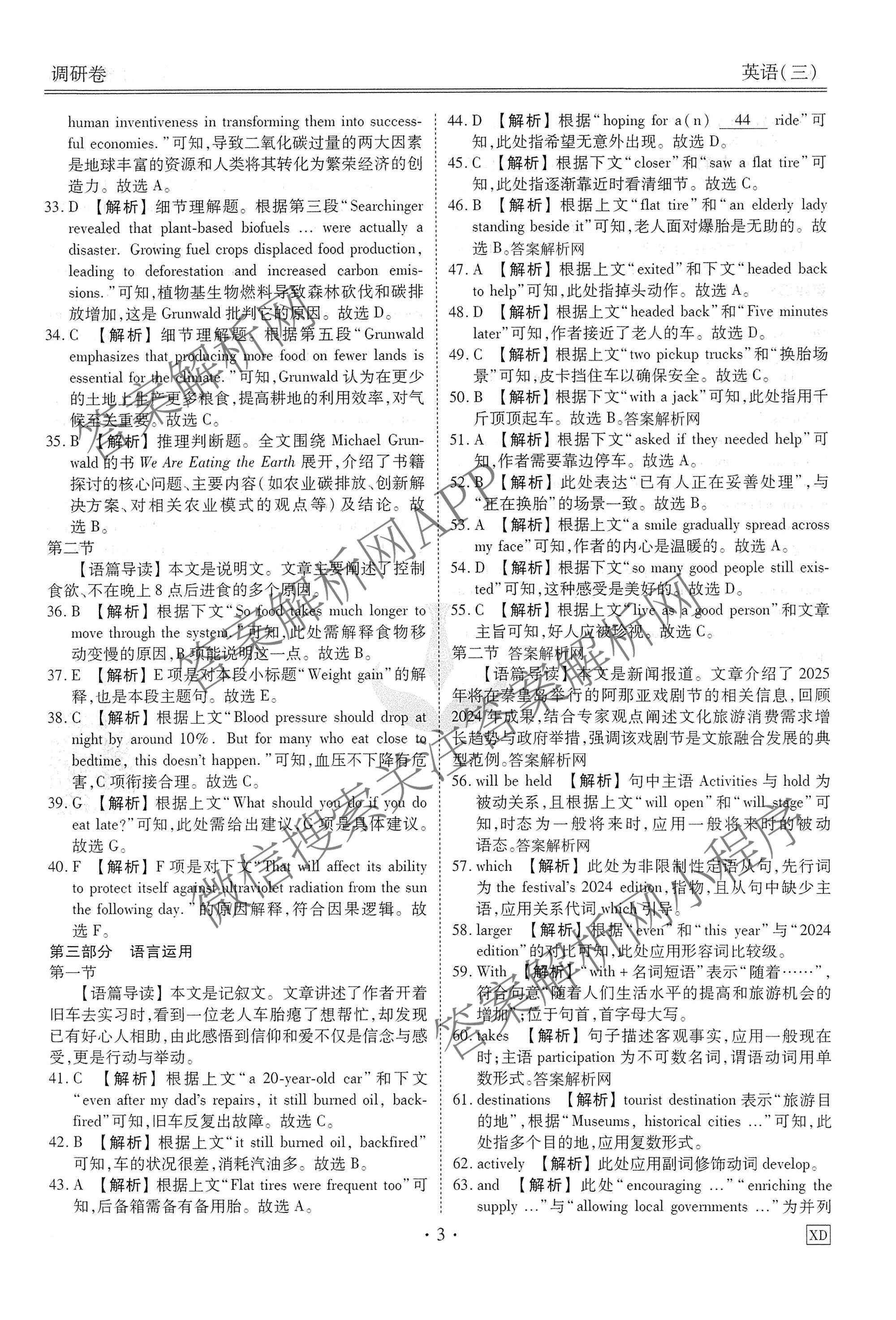 [高三]衡水金卷先享题·调研卷·2026年普通高等学校招生全国统一考试模拟试题(三)3英语(XD)答案