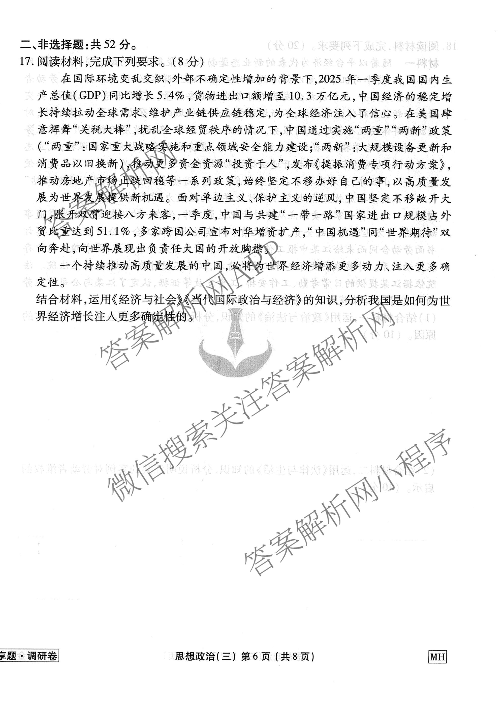 - [高三](衡水金卷先享题)·调研卷·2026年普通高中学业水平选择性考试模拟试题(三)3政治(GX)试题