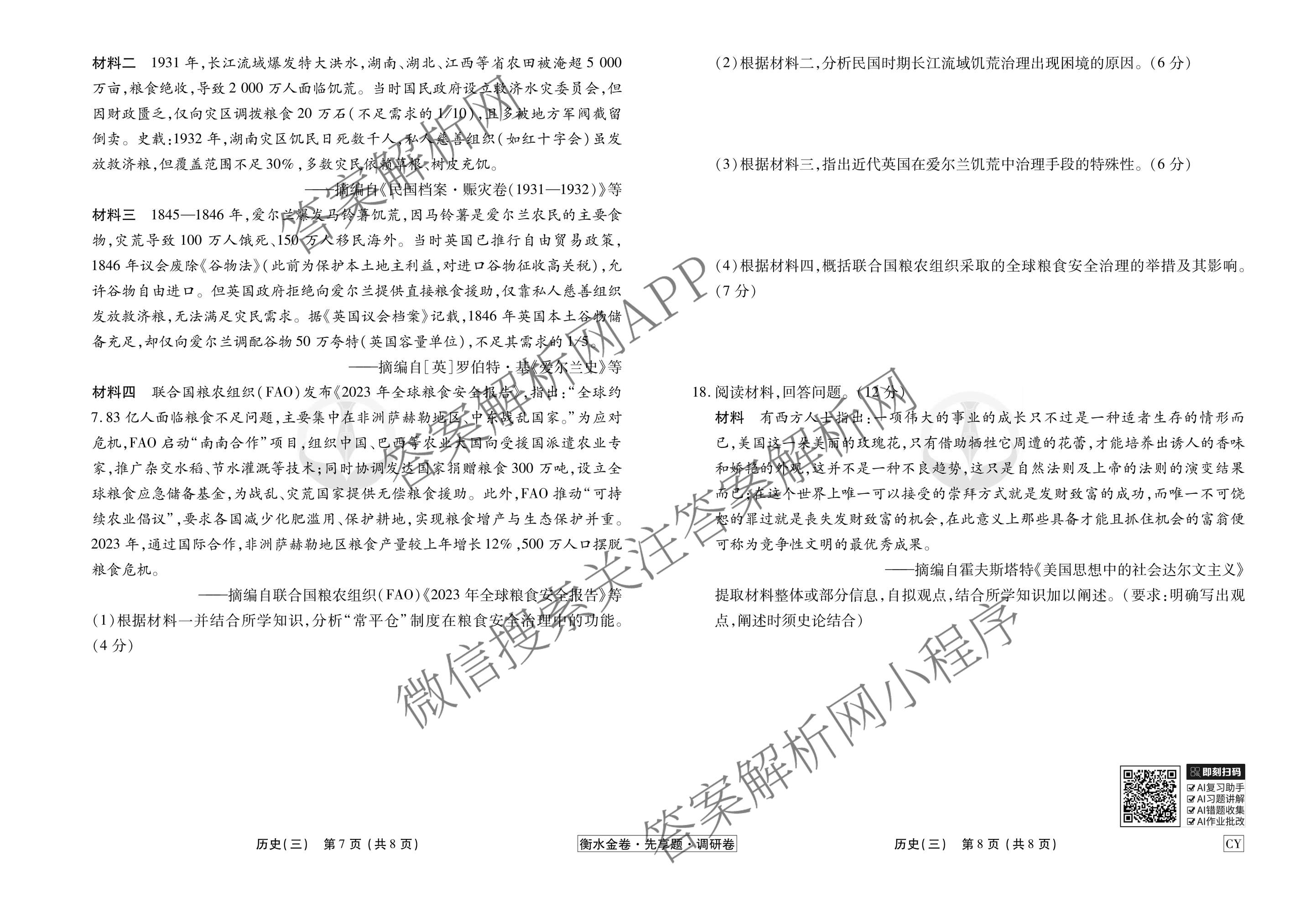 - 衡水金卷先享题调研卷2026年普通高中学业水平选择性考试模拟试题(三)3历史(AH)试题