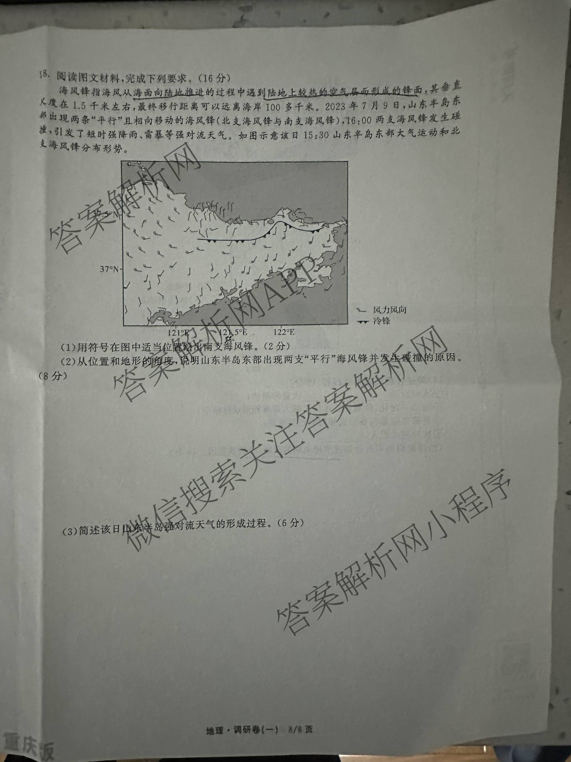 - [高三]天舟高考(衡中同卷)·2026年普通高中学业水平选择性考试模拟调研卷(一)1地理(重庆版)答案