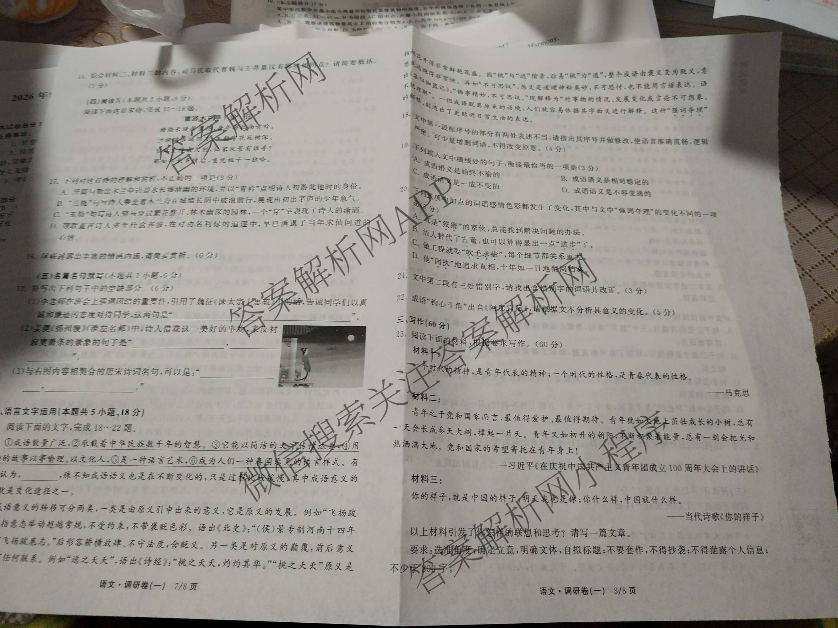 天舟高考衡中同卷·2026年普通高等学校招生全国统一考试模拟调研卷(一)1语文(无字母)试题,目前衡水金卷先享题答案网已经汇总了天舟高考衡中同卷·2026年普通高等学校招生全国统一考试模拟调研卷(一)1语文(无字母)试题的各科答案和试卷,获取更多衡中同卷答案解析,请在关注本站。