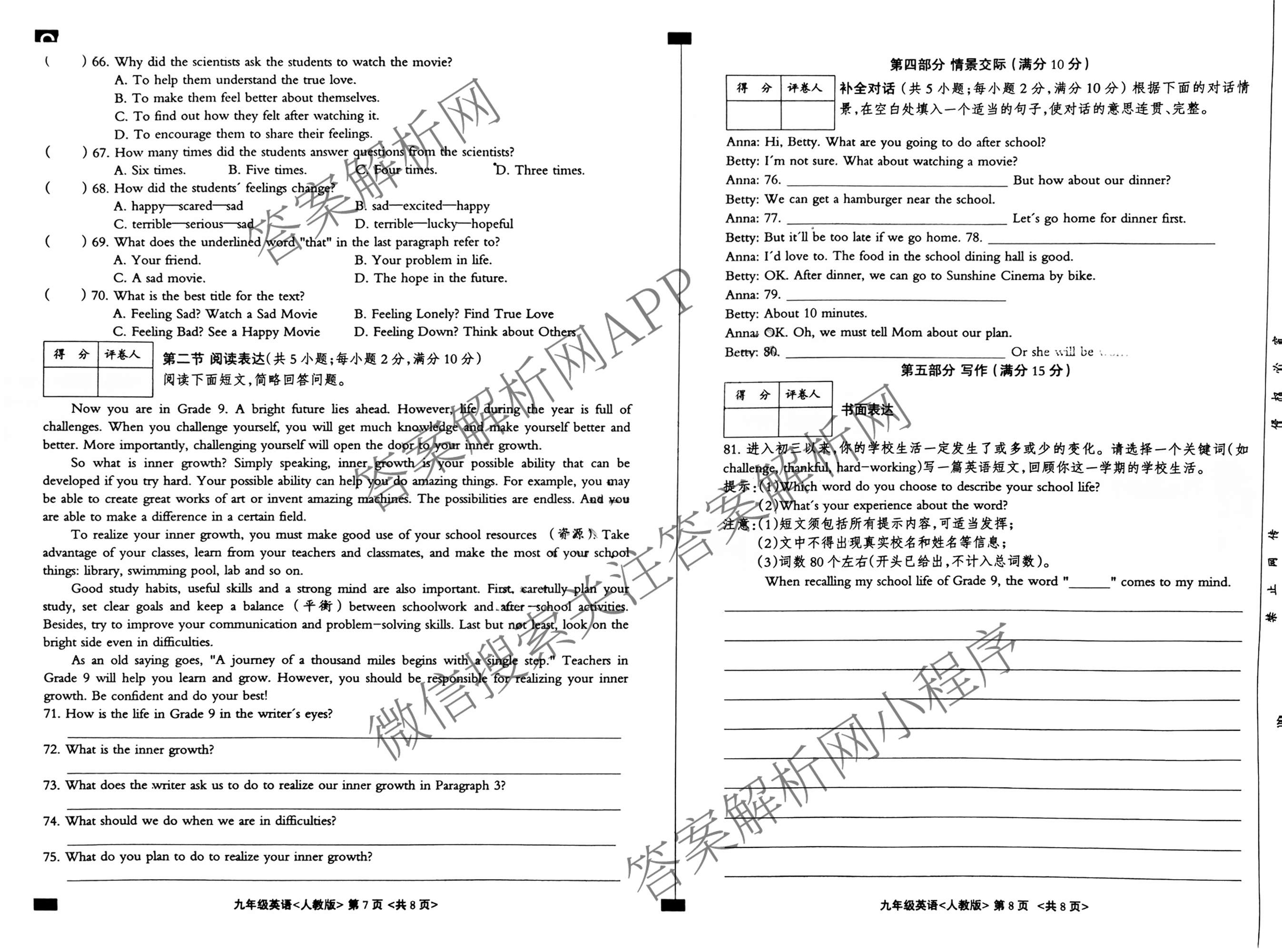 思博·河北省2025~2026学年九年级第一学期期末教学质量检测<尖括号B>英语(人教版)试题,目前衡水金卷先享题答案网已经汇总了思博·河北省2025~2026学年九年级第一学期期末教学质量检测<尖括号B>英语(人教版)试题的各科答案和试卷,获取更多思博学业质量检测答案解析,请在关注本站。
