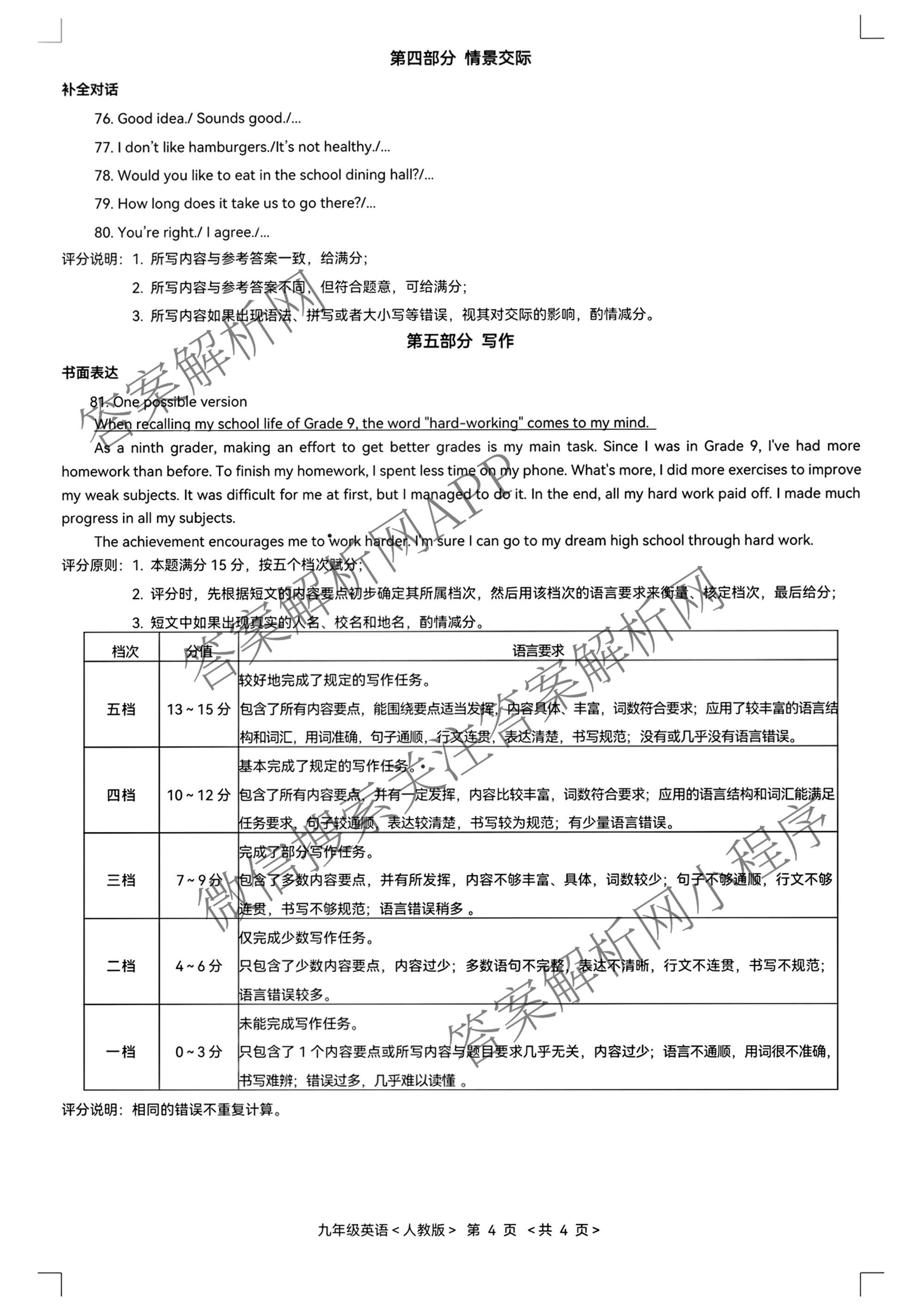 - 2025~2026思博·河北省学年[九年级]第一学期期末教学质量检测英语(人教版)答案