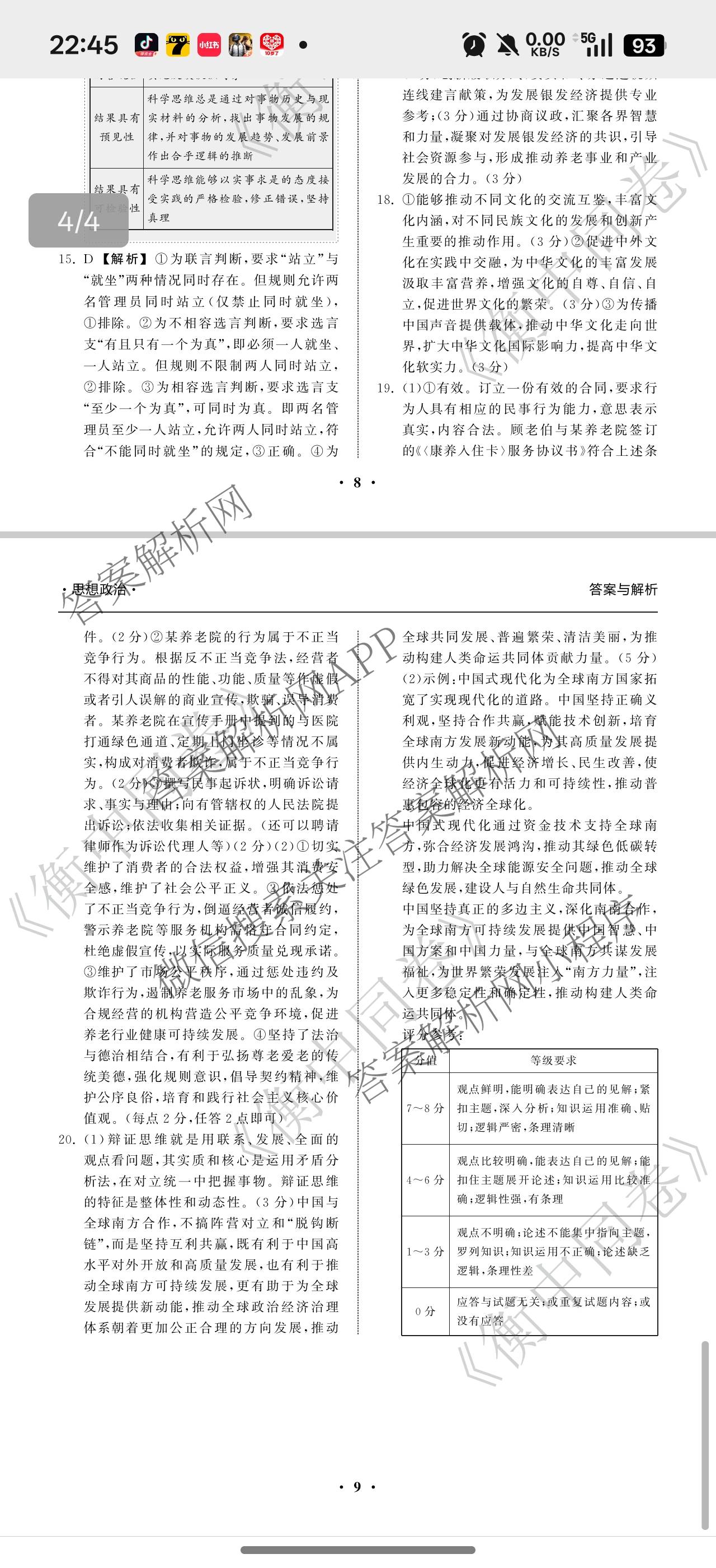 高三天舟高考(衡中同卷)2026年普通高中学业水平选择性考试模拟调研卷(二)2政治(GS)答案