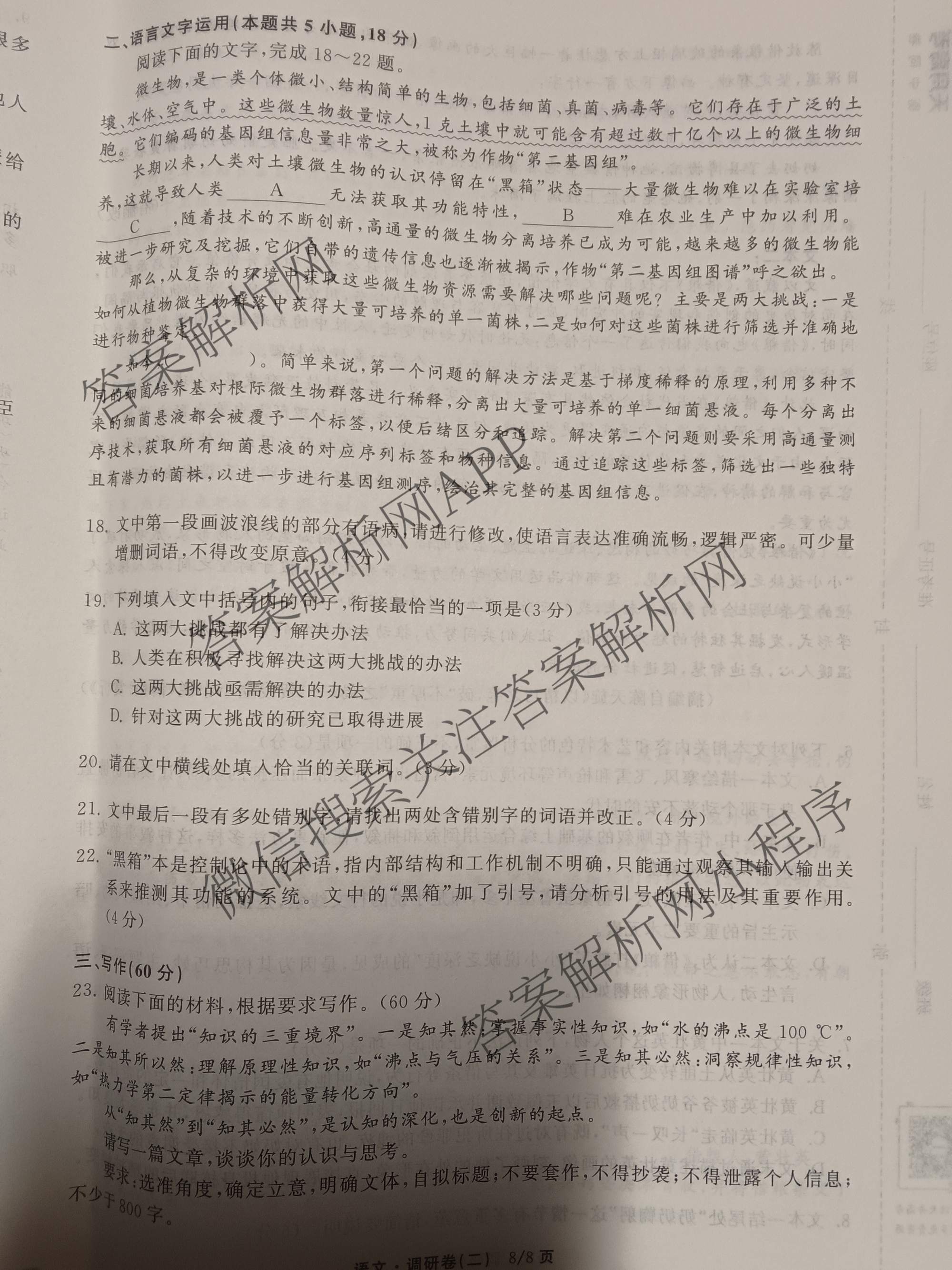 天舟高考衡中同卷·2026年普通高等学校招生全国统一考试模拟调研卷(二)2语文(B)试题,目前衡水金卷先享题答案网已经汇总了天舟高考衡中同卷·2026年普通高等学校招生全国统一考试模拟调研卷(二)2语文(B)试题的各科答案和试卷,获取更多衡中同卷答案解析,请在关注本站。