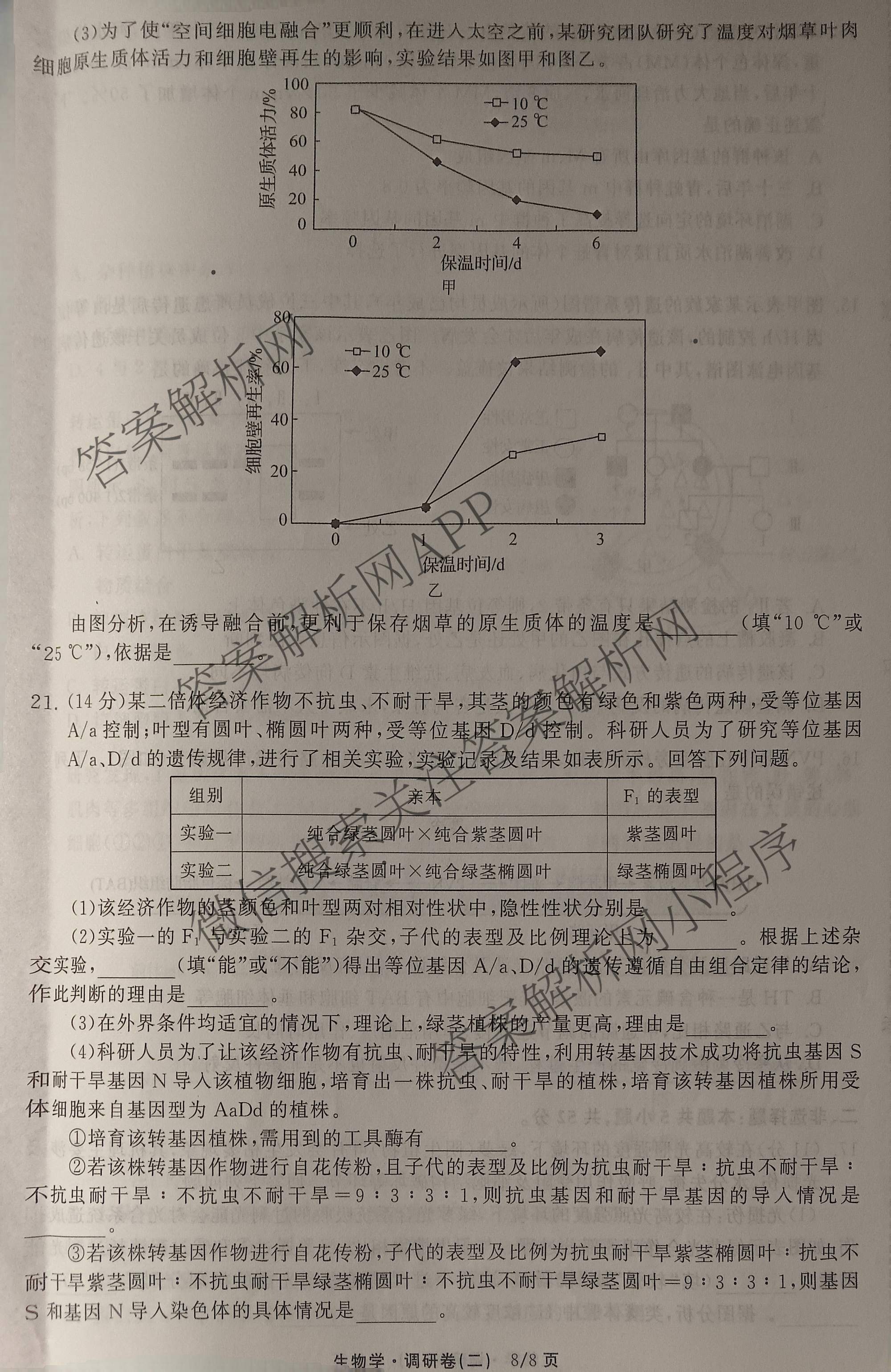 - [高三]天舟高考衡中同卷·2026年普通高中学业水平选择性考试模拟调研卷(二)2生物答案