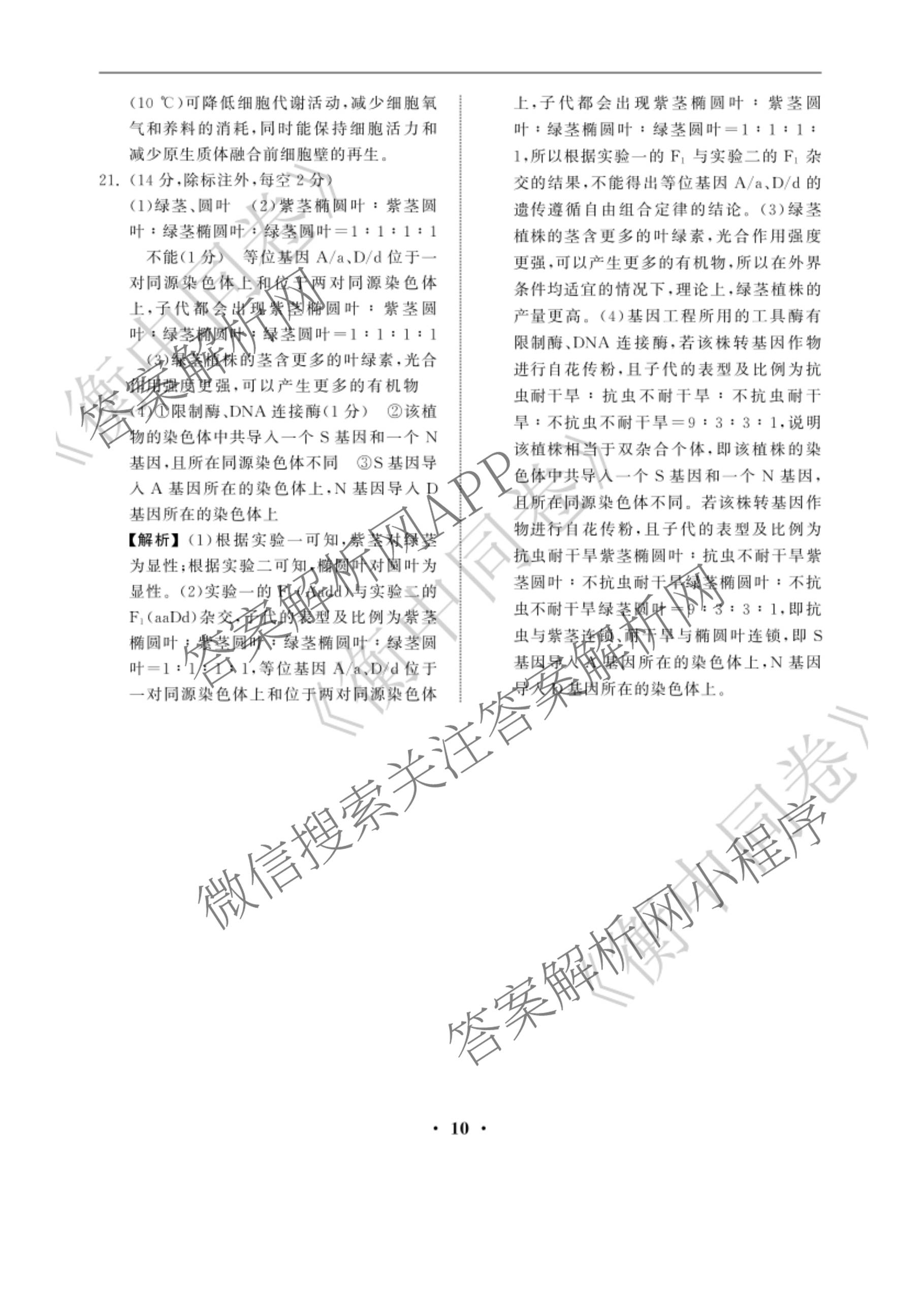 - [高三]天舟高考衡中同卷·2026年普通高中学业水平选择性考试模拟调研卷(二)2生物答案