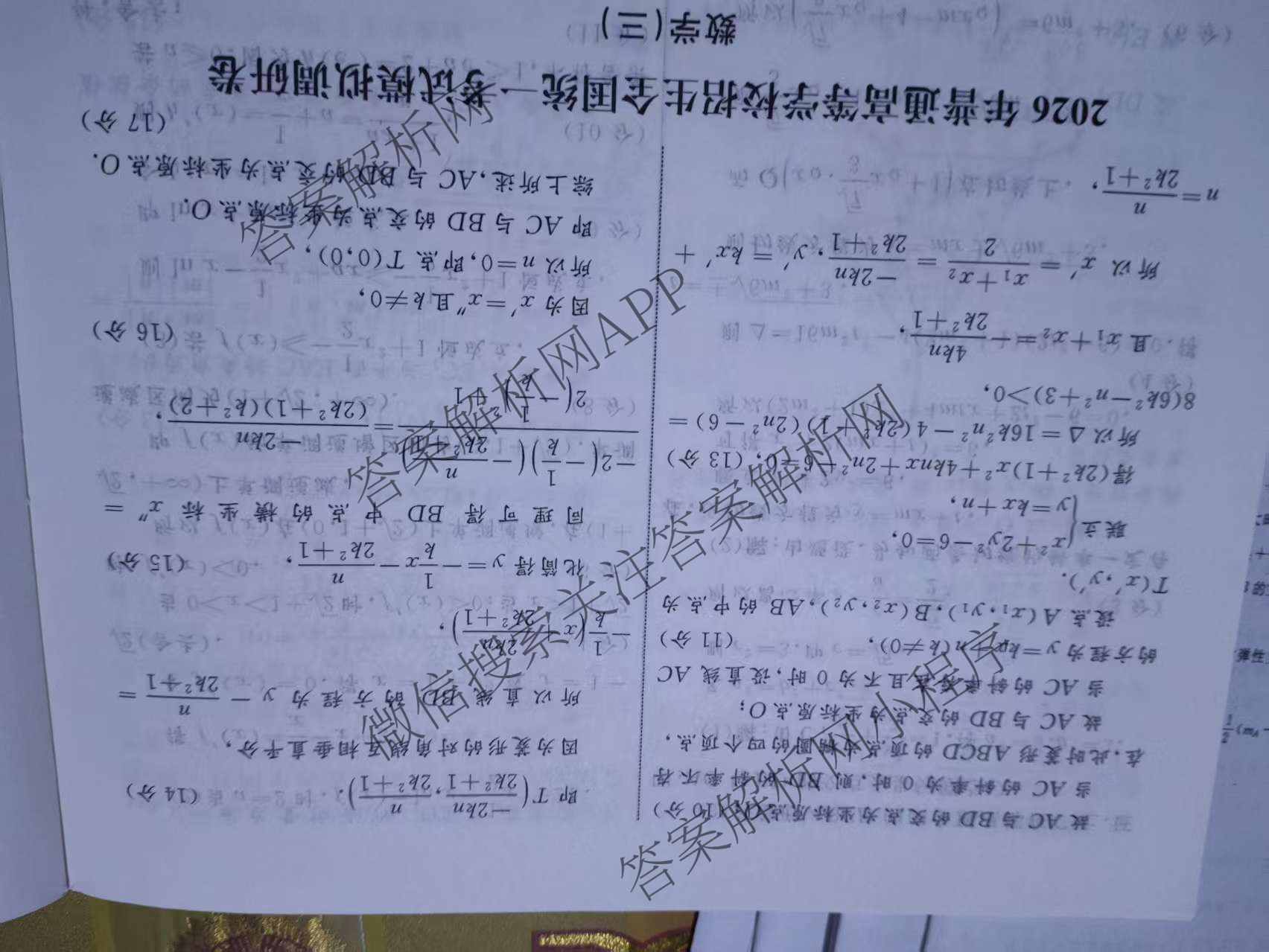 - (高三)天舟高考(衡中同卷)2026年普通高等学校招生全国统一考试模拟调研卷(二)2数学(无字母)试题