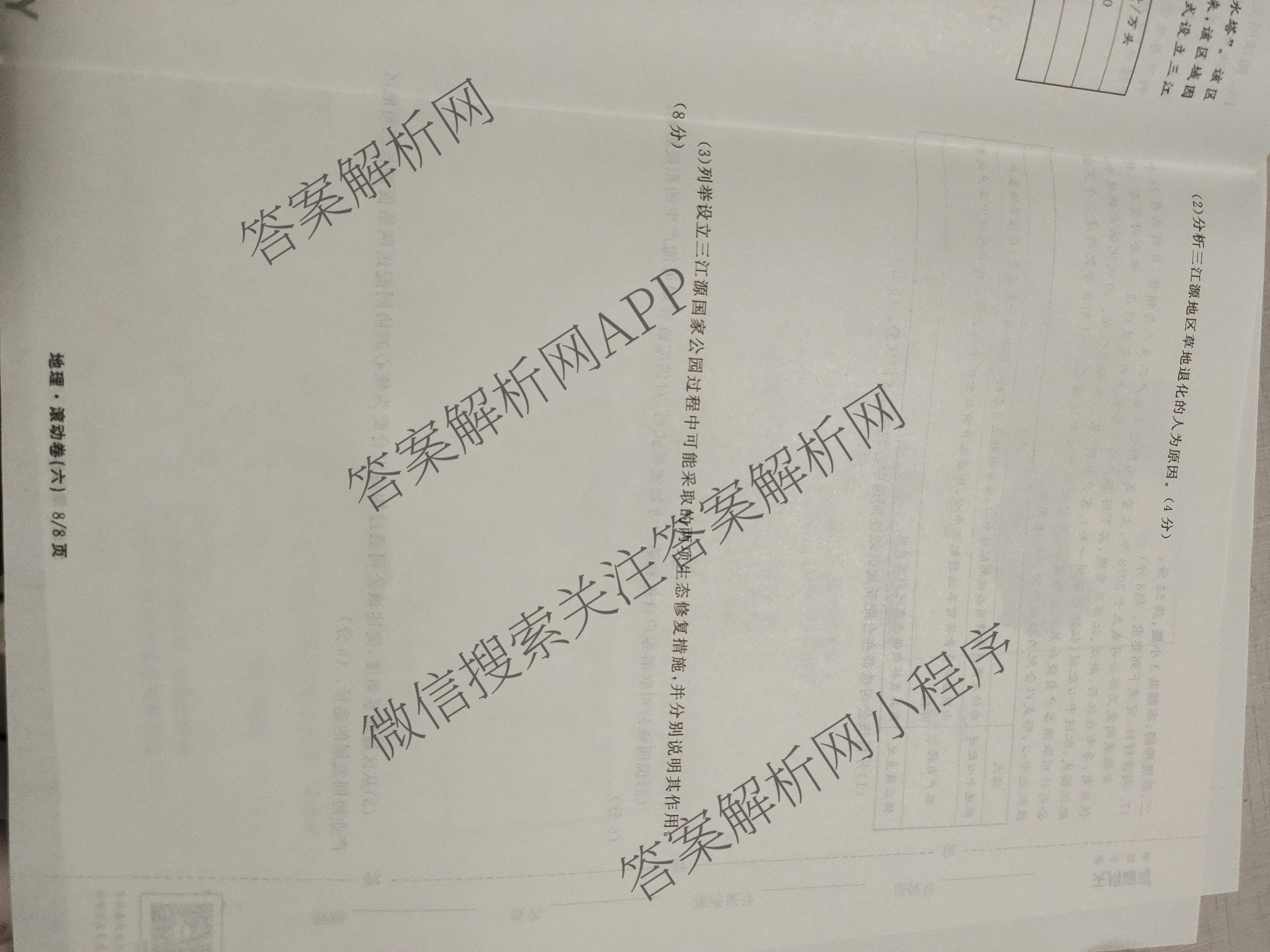 - 2025-2026(高三)(衡中同卷)·学年度复习滚动卷(六)6地理(JY)试题