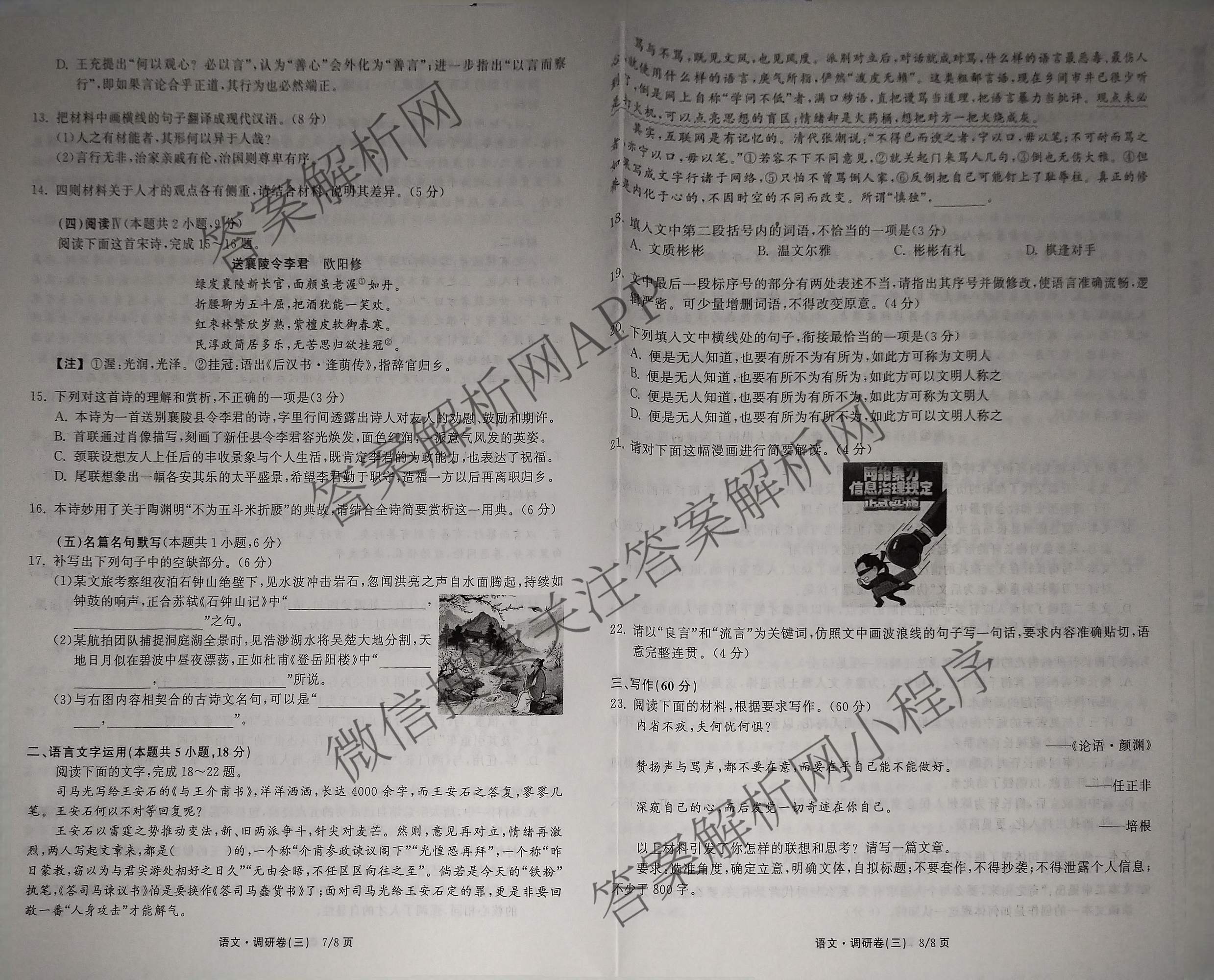 天舟高考衡中同卷·2026年普通高等学校招生全国统一考试模拟调研卷(三)3语文(无字母)试题,目前衡水金卷先享题答案网已经汇总了天舟高考衡中同卷·2026年普通高等学校招生全国统一考试模拟调研卷(三)3语文(无字母)试题的各科答案和试卷,获取更多衡中同卷答案解析,请在关注本站。