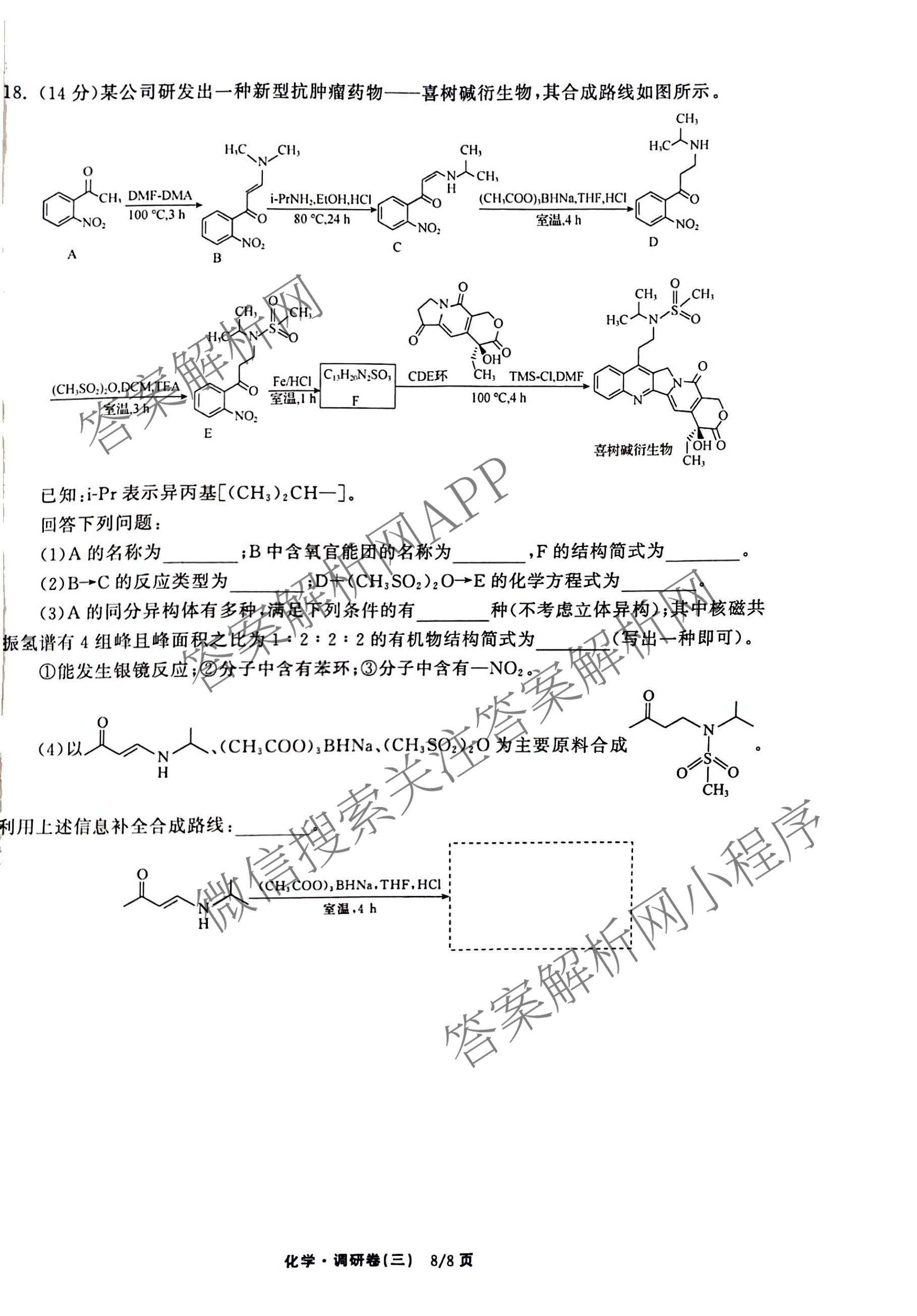 - 天舟高考衡中同卷2026年普通高中学业水平选择性考试模拟调研卷(三)3化学(山东版)答案