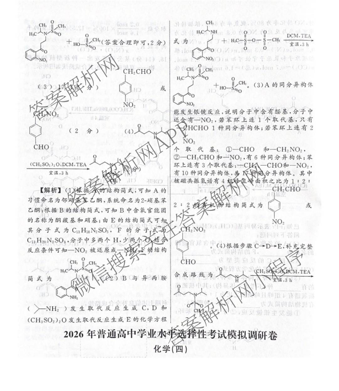 - (高三)天舟高考[衡中同卷]·2026年普通高中学业水平选择性考试模拟调研卷(三)3化学(JY)答案