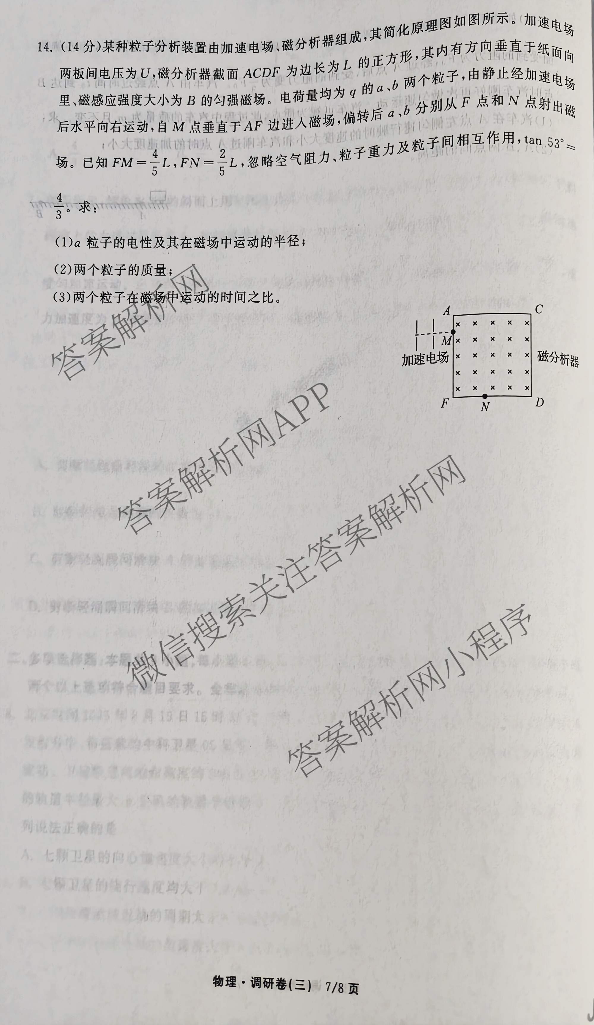 - [高三]天舟高考衡中同卷2026年普通高中学业水平选择性考试模拟调研卷(三)3物理(安徽版)答案