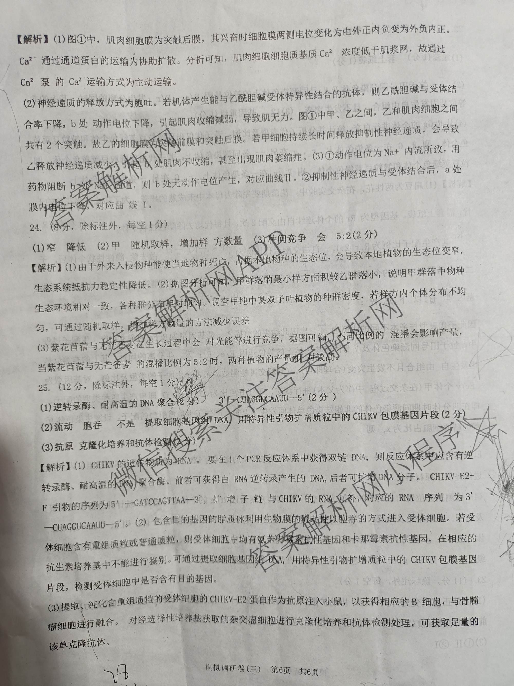 - (高三)天舟高考衡中同卷·2026年普通高中学业水平选择性考试模拟调研卷(三)3生物(JY)答案
