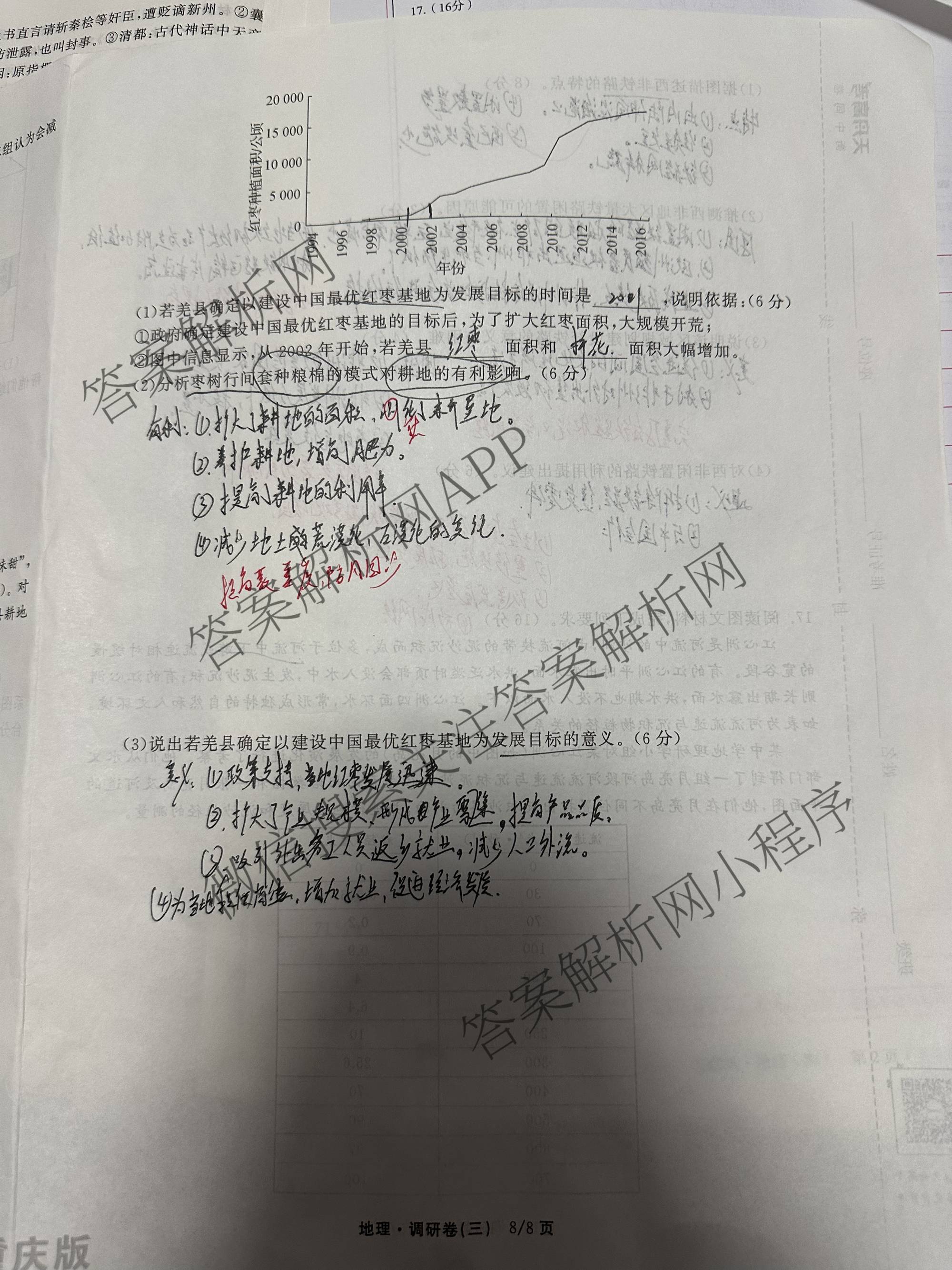 - [高三]天舟高考衡中同卷2026年普通高中学业水平选择性考试模拟调研卷(三)3地理答案
