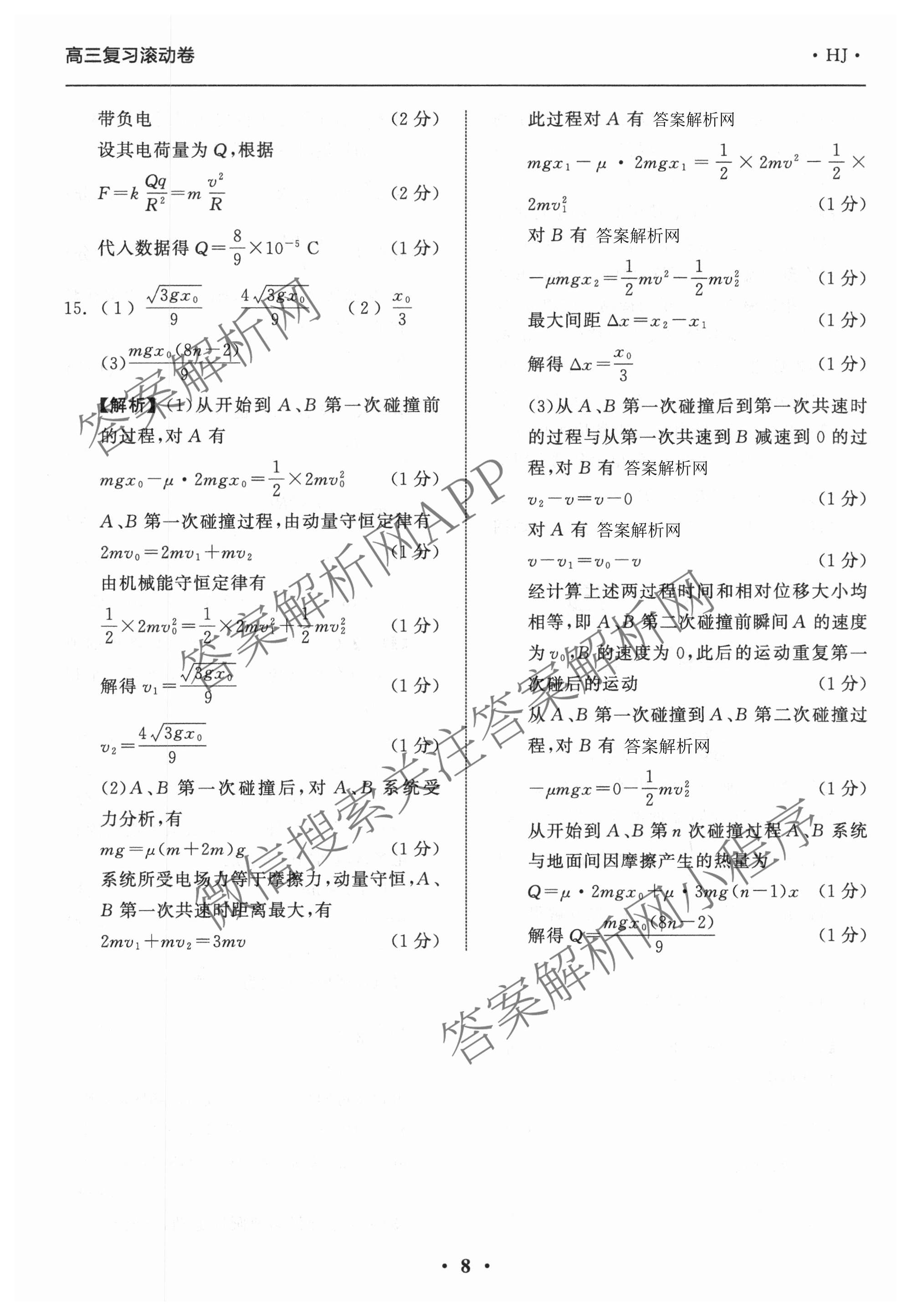 - 2025-2026[衡中同卷]·学年度[高三]复习滚动卷(二)2物理(HJ)答案
