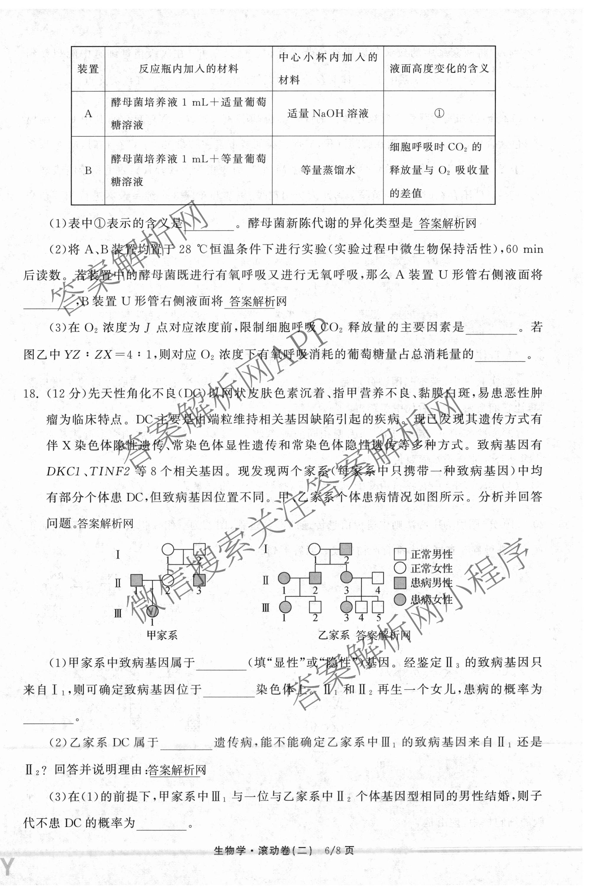 - 2025-2026[高三](衡中同卷)·学年度复习滚动卷(二)2生物(DS)答案