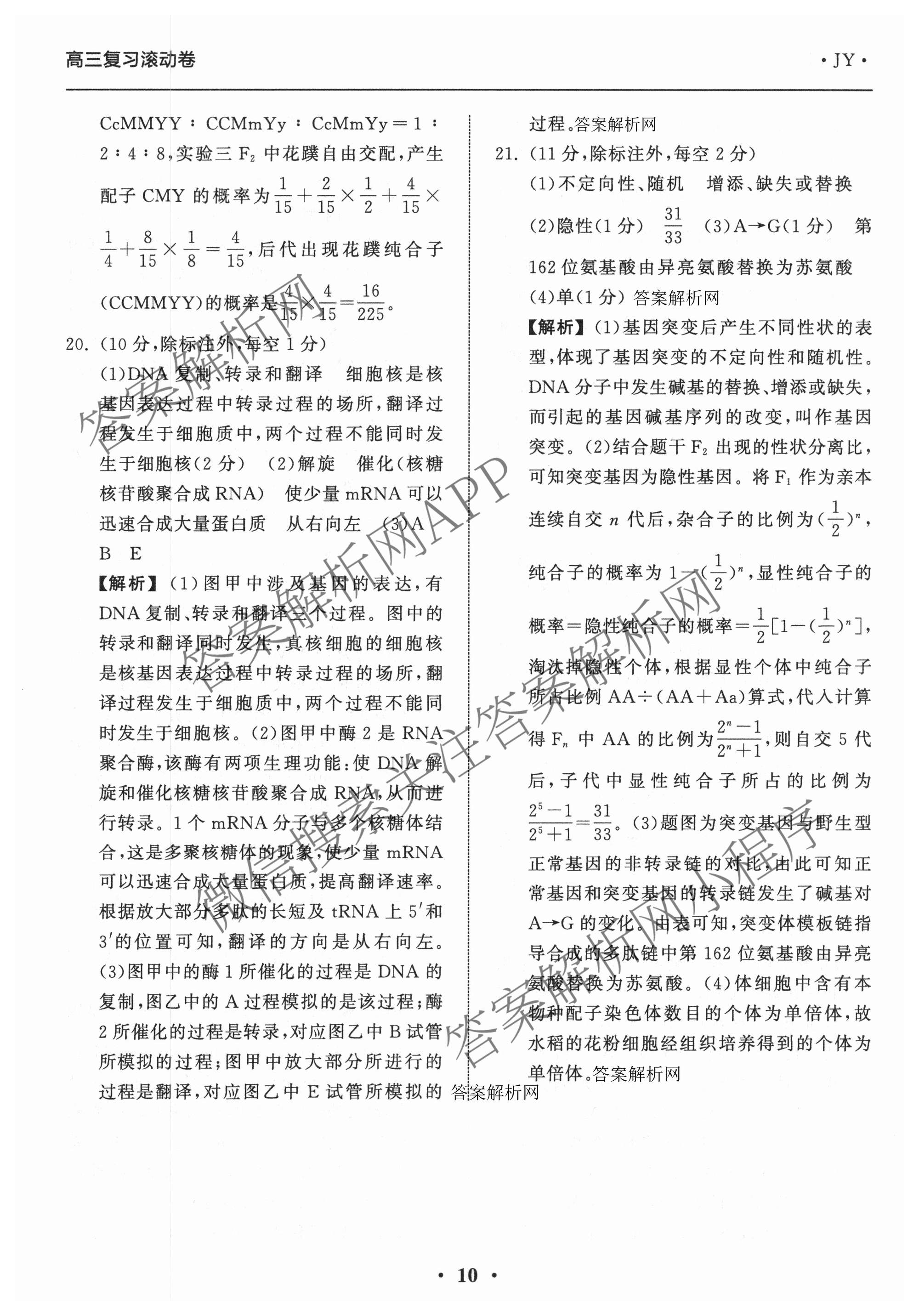 - 2025-2026[衡中同卷]学年度(高三)复习滚动卷(二)2生物(JY)答案