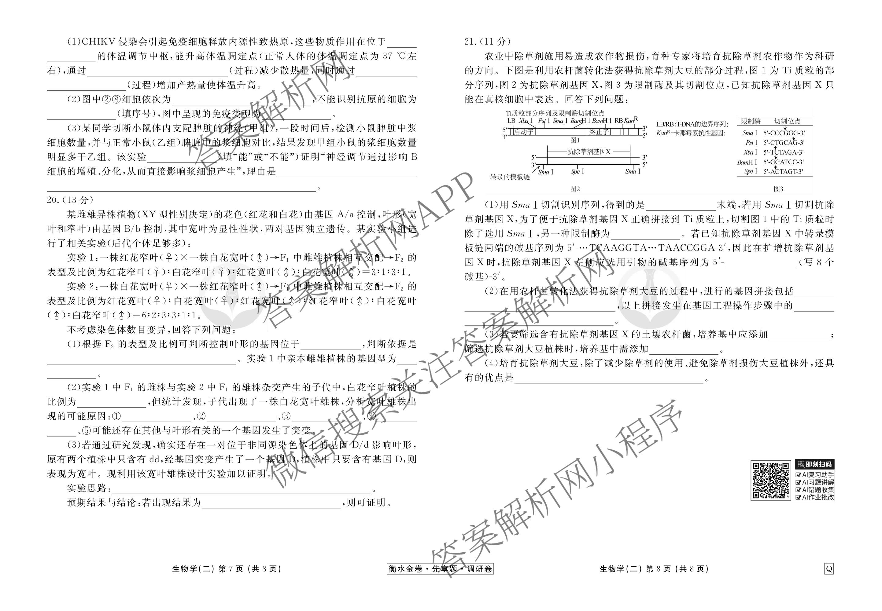 衡水金卷先享题·调研卷·2026年普通高中学业水平选择性考试模拟(二)2生物(Q)试题,目前衡水金卷先享题答案网已经汇总了衡水金卷先享题·调研卷·2026年普通高中学业水平选择性考试模拟(二)2生物(Q)试题的各科答案和试卷,获取更多衡水金卷先享题答案解析,请在关注本站。