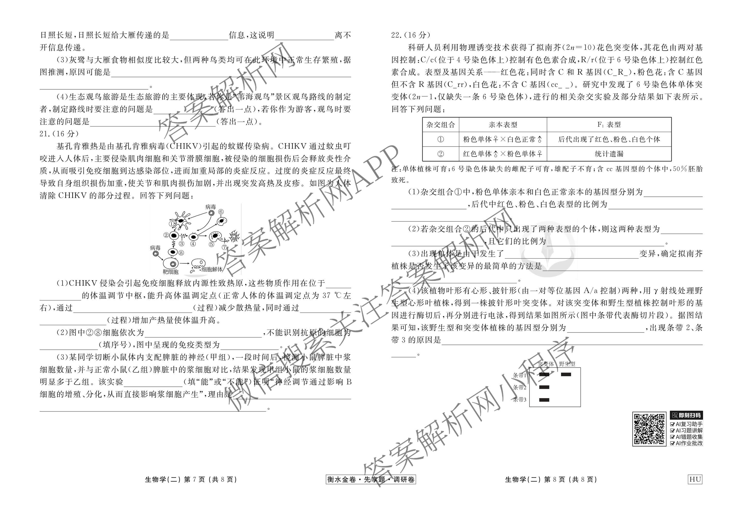 衡水金卷先享题·调研卷·2026年普通高中学业水平选择性考试模拟试题(二)2生物(HU)试题,目前衡水金卷先享题答案网已经汇总了衡水金卷先享题·调研卷·2026年普通高中学业水平选择性考试模拟试题(二)2生物(HU)试题的各科答案和试卷,获取更多衡水金卷先享题答案解析,请在关注本站。
