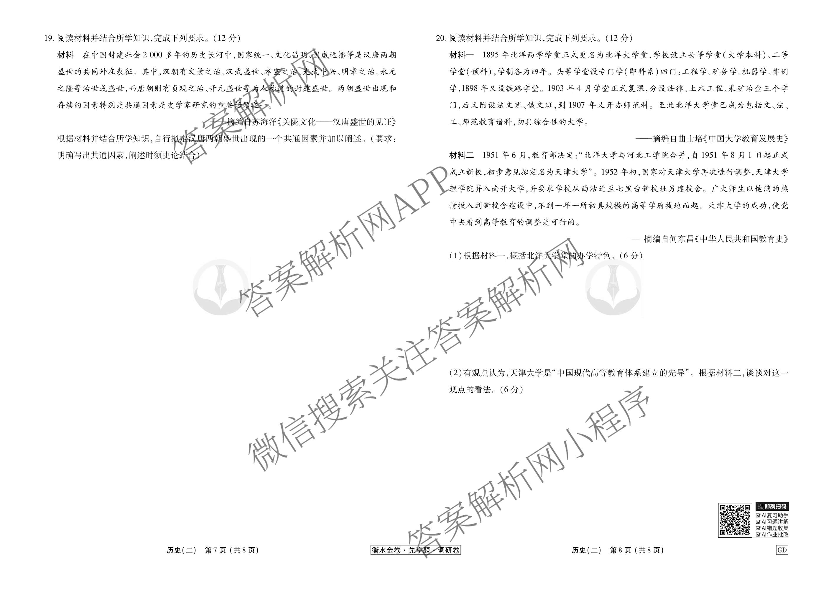 衡水金卷先享题·调研卷·2026年普通高中学业水平选择性考试模拟试题(二)2历史(GD)试题,目前衡水金卷先享题答案网已经汇总了衡水金卷先享题·调研卷·2026年普通高中学业水平选择性考试模拟试题(二)2历史(GD)试题的各科答案和试卷,获取更多衡水金卷先享题答案解析,请在关注本站。