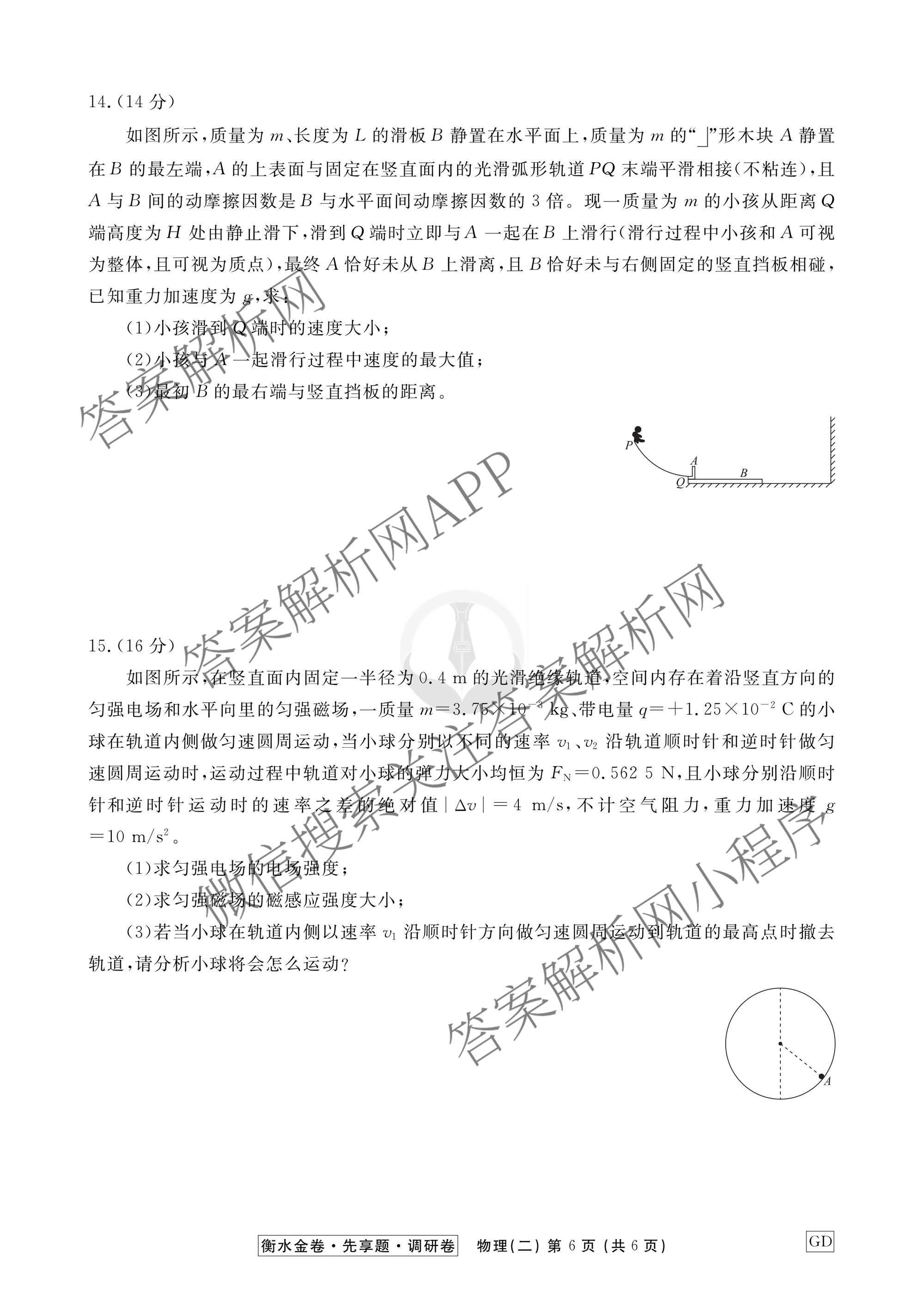衡水金卷先享题·调研卷·2026年普通高中学业水平选择性考试模拟试题(二)2物理(GD)试题,目前衡水金卷先享题答案网已经汇总了衡水金卷先享题·调研卷·2026年普通高中学业水平选择性考试模拟试题(二)2物理(GD)试题的各科答案和试卷,获取更多衡水金卷先享题答案解析,请在关注本站。