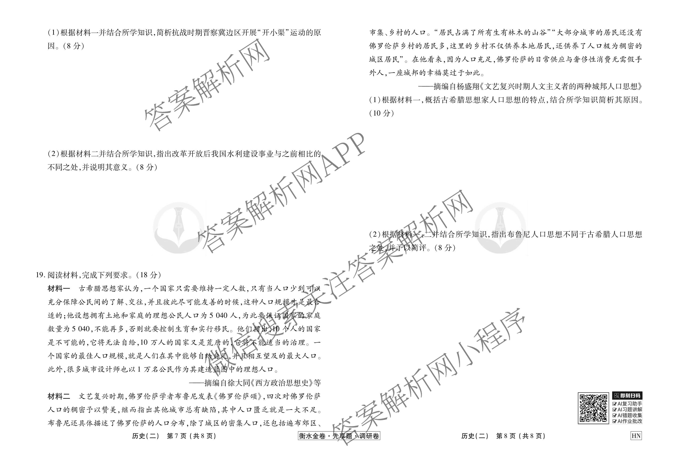 - [衡水金卷先享题]调研卷2026年普通高中学业水平选择性考试模拟试题(二)2历史(HU)答案