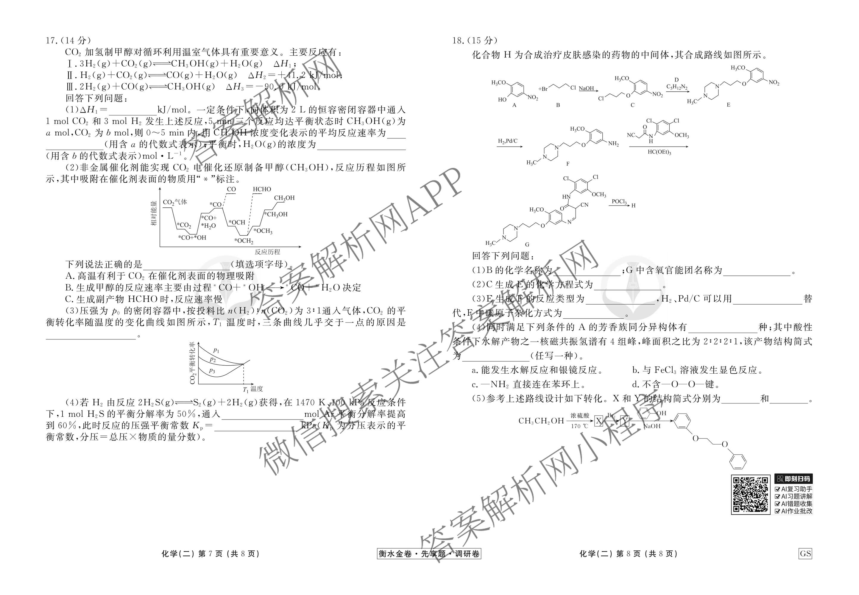 - (衡水金卷先享题)调研卷2026年普通高中学业水平选择性考试模拟试题(二)2化学(GS)答案