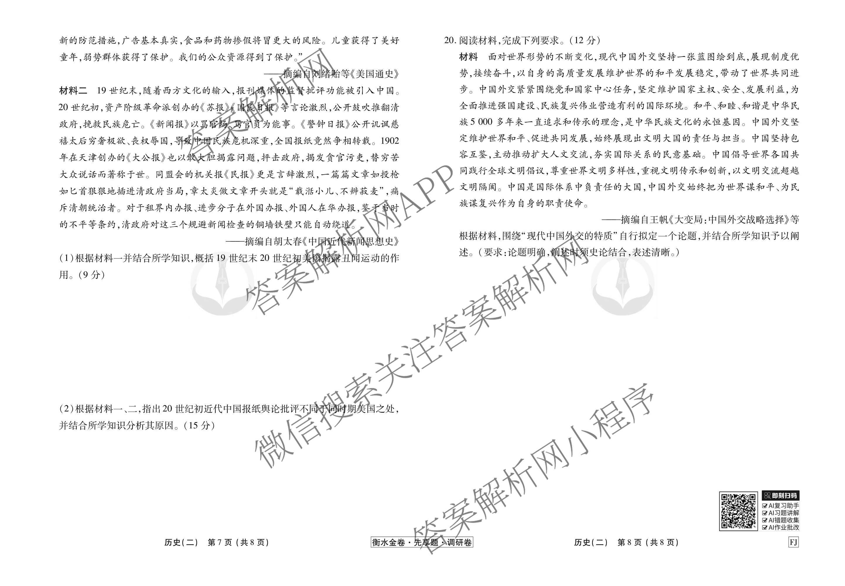 - (高三)衡水金卷先享题·调研卷·2026年普通高中学业水平选择性考试模拟试题(二)2历史(AH)答案