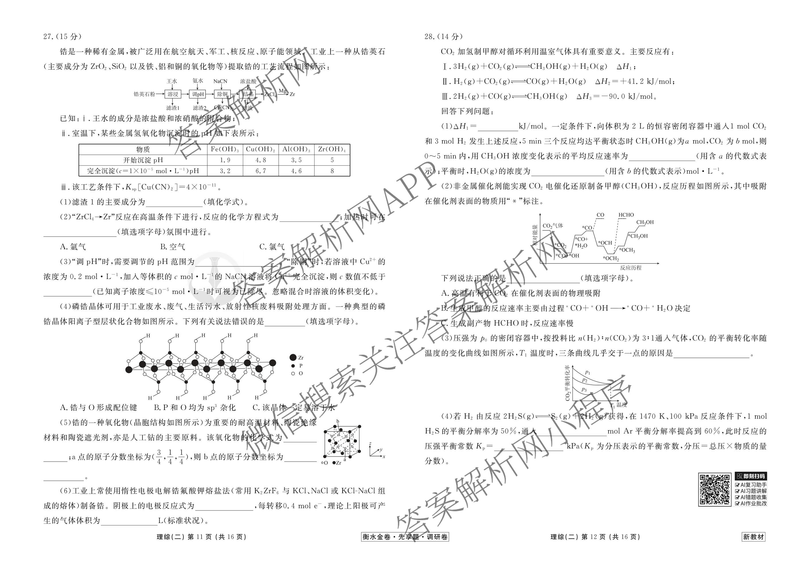 - (高三)(衡水金卷先享题)·调研卷·2026年普通高中学业水平选择性考试模拟试题(二)2化学(Q)答案