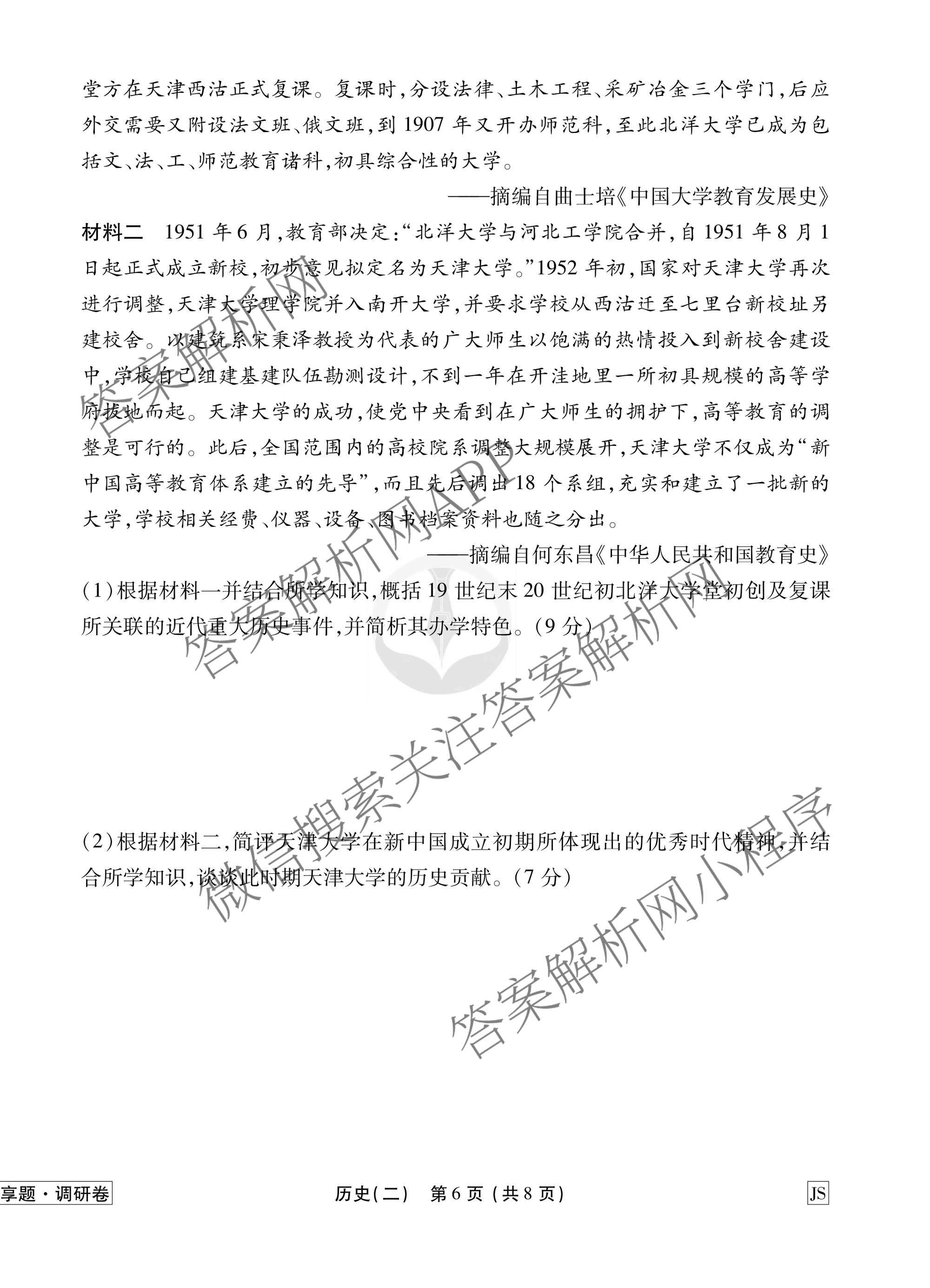 - [衡水金卷先享题]·调研卷·2026年普通高中学业水平选择性考试模拟试题(二)2历史(JS)答案