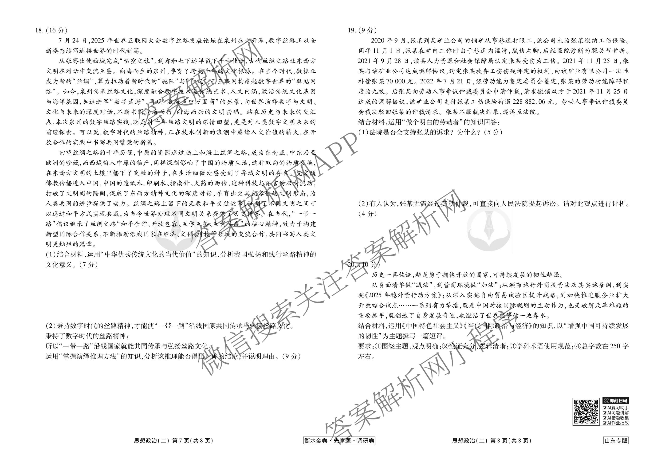 衡水金卷先享题·调研卷·2026年普通高中学业水平等级考试模拟试题(二)2政治(山东专版)试题,目前衡水金卷先享题答案网已经汇总了衡水金卷先享题·调研卷·2026年普通高中学业水平等级考试模拟试题(二)2政治(山东专版)试题的各科答案和试卷,获取更多衡水金卷先享题答案解析,请在关注本站。