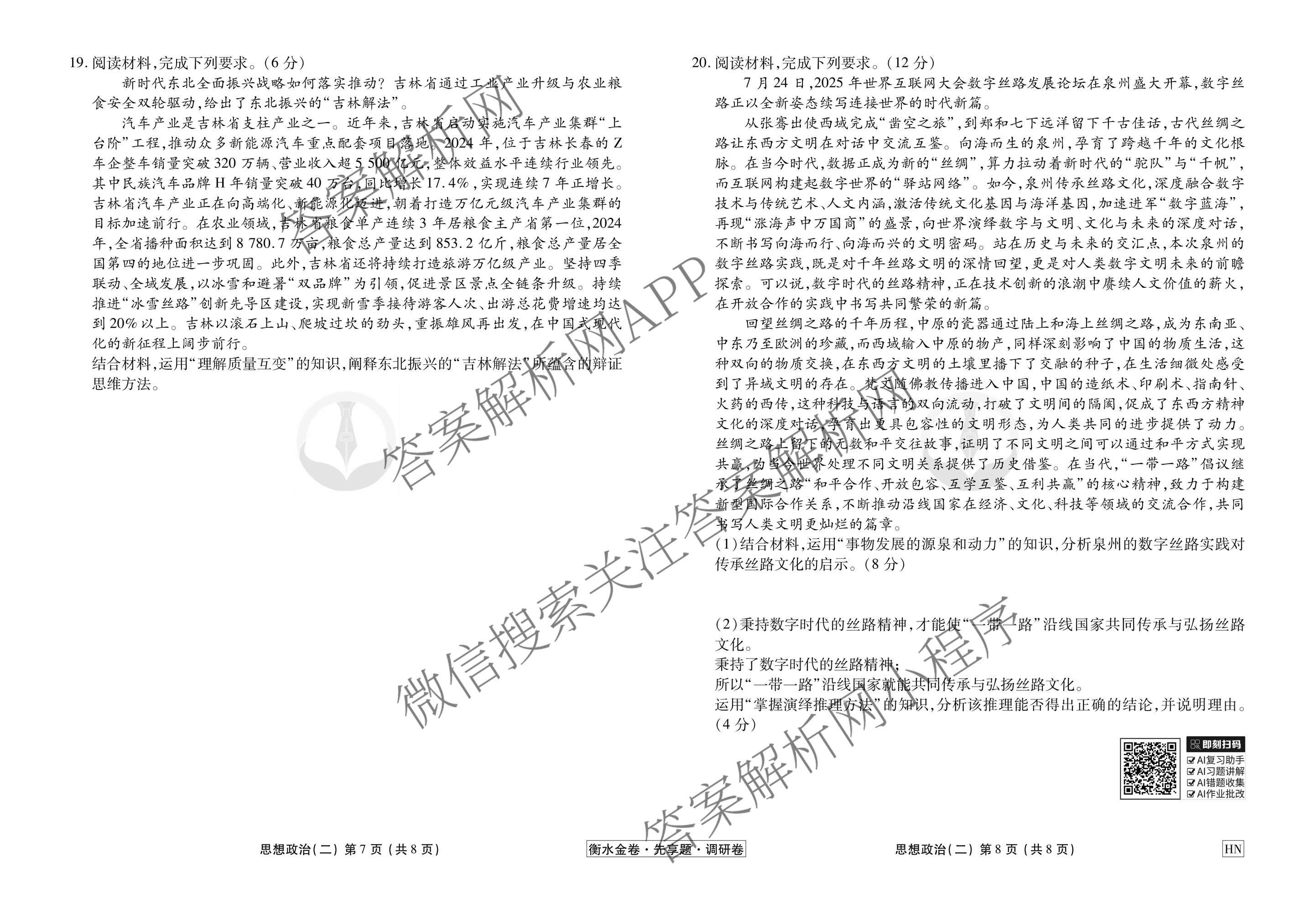 衡水金卷先享题·调研卷·2026年普通高中学业水平选择性考试模拟试题(二)2政治(HN)试题,目前衡水金卷先享题答案网已经汇总了衡水金卷先享题·调研卷·2026年普通高中学业水平选择性考试模拟试题(二)2政治(HN)试题的各科答案和试卷,获取更多衡水金卷先享题答案解析,请在关注本站。