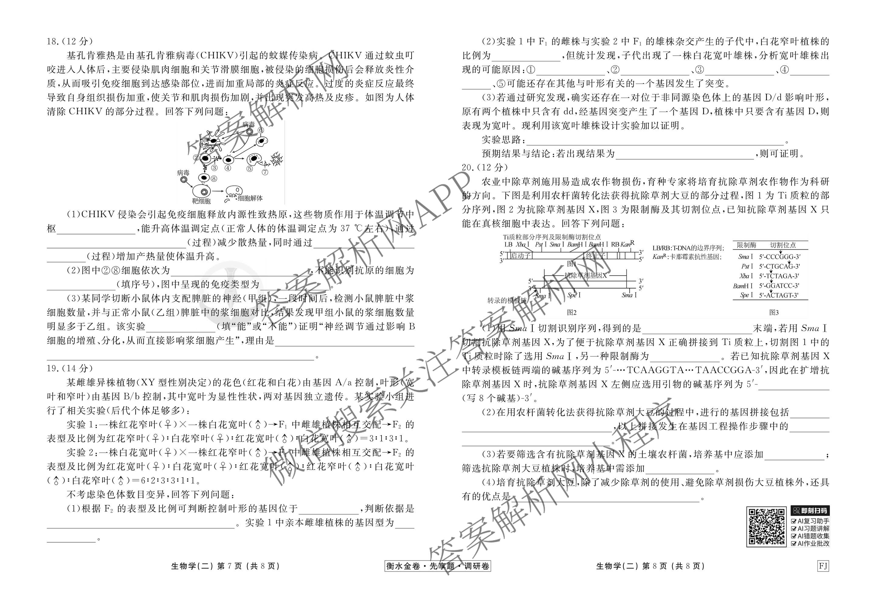 衡水金卷先享题·调研卷·2026年普通高中学业水平选择性考试模拟试题(二)2生物(FJ)试题,目前衡水金卷先享题答案网已经汇总了衡水金卷先享题·调研卷·2026年普通高中学业水平选择性考试模拟试题(二)2生物(FJ)试题的各科答案和试卷,获取更多衡水金卷先享题答案解析,请在关注本站。