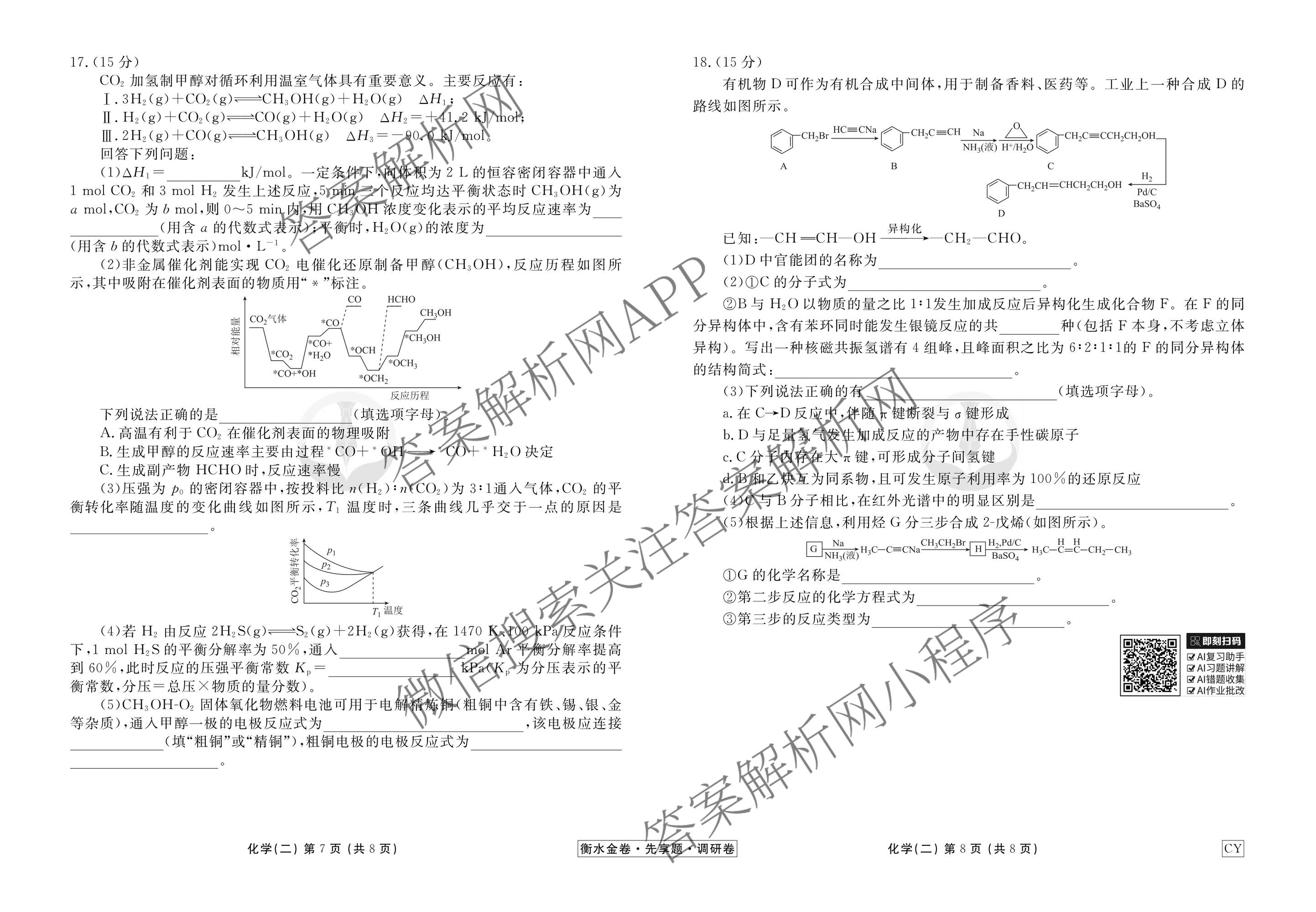 - (衡水金卷先享题)调研卷2026年普通高中学业水平选择性考试模拟试题(二)2化学(GS)答案