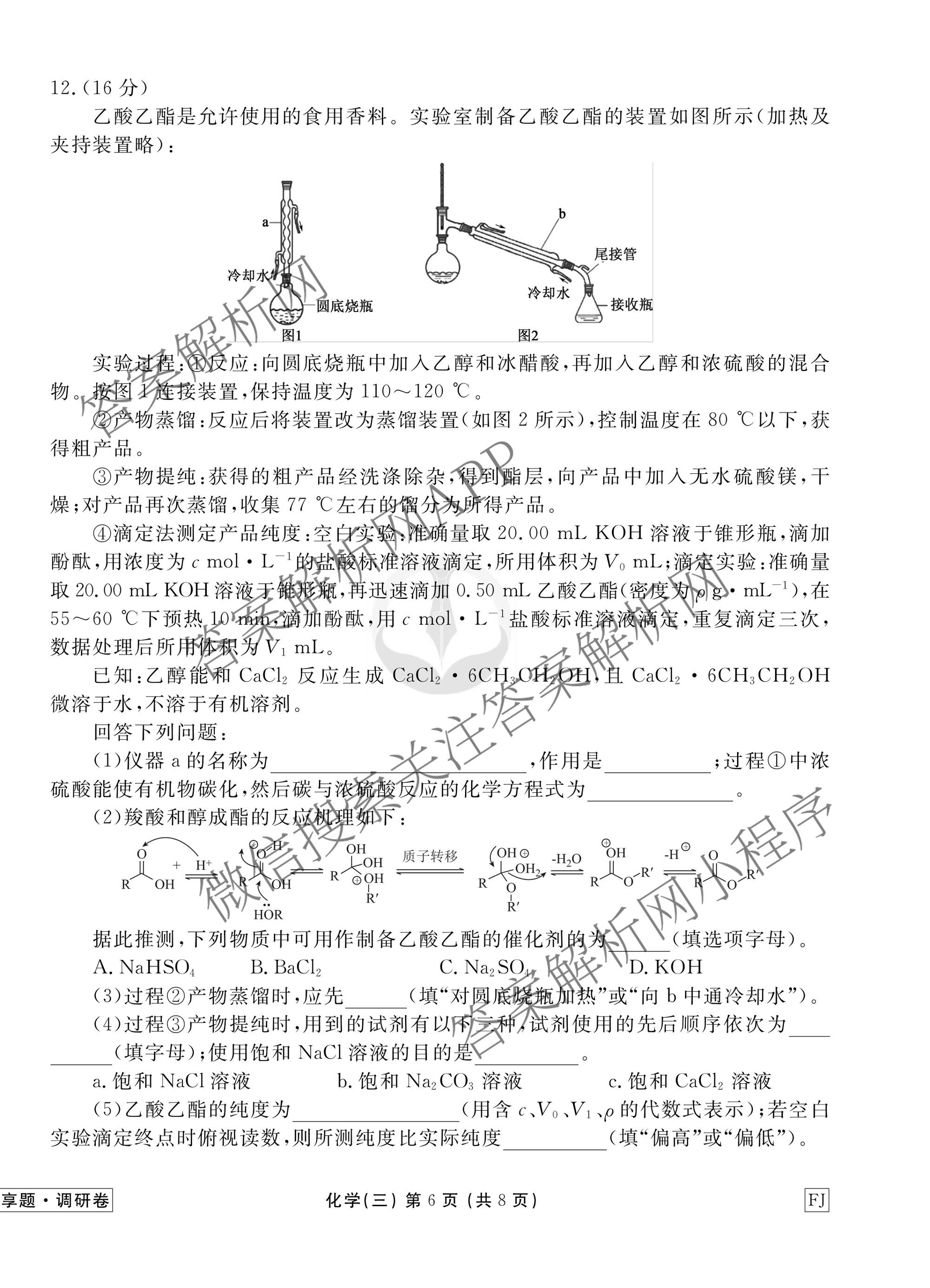 - [高三]衡水金卷先享题调研卷2026年普通高中学业水平选择性考试模拟试题(三)3化学(AH)试题