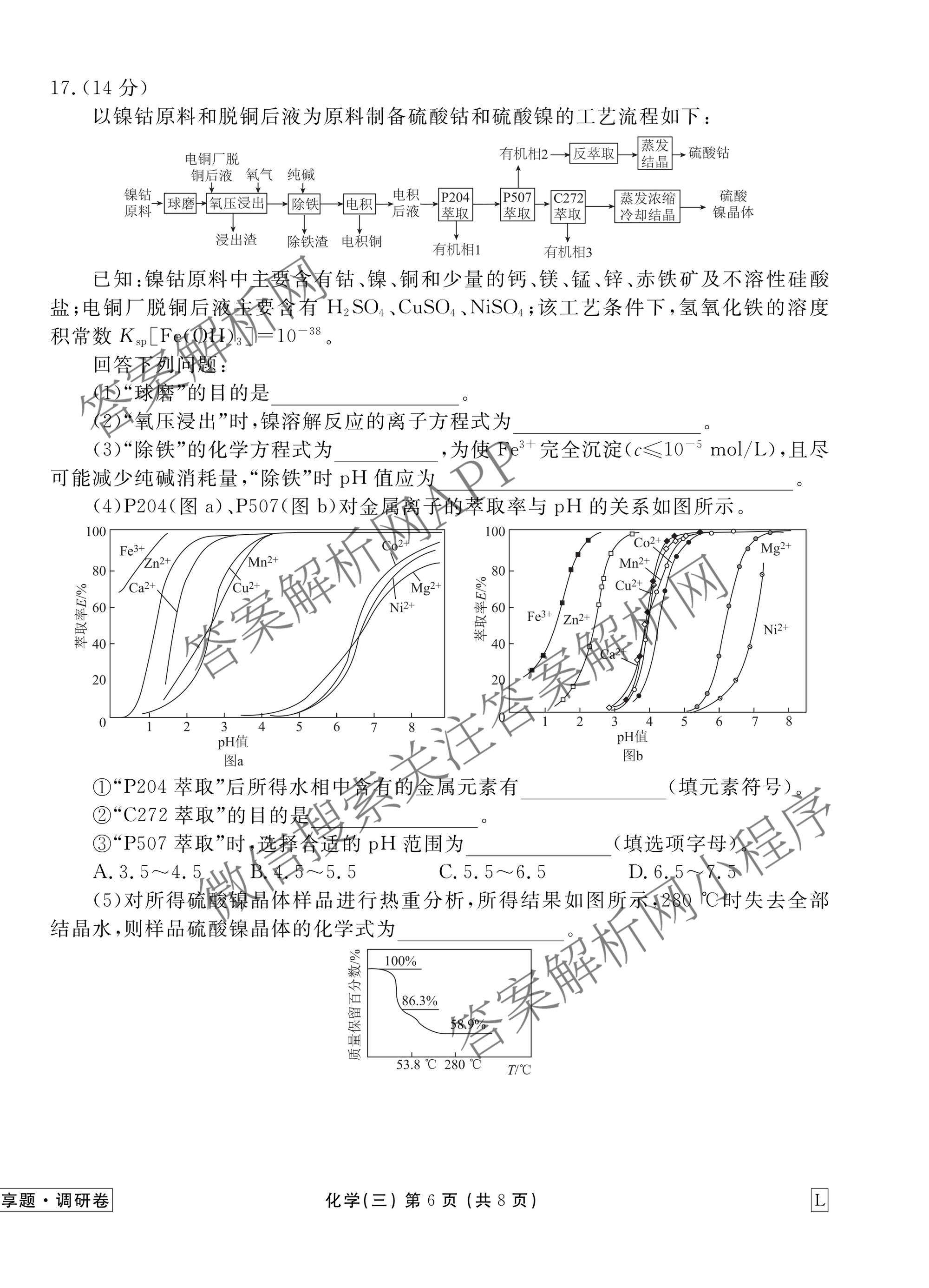 - [衡水金卷先享题]·调研卷·2026年普通高中学业水平选择性考试模拟试题(三)3化学(HN)答案