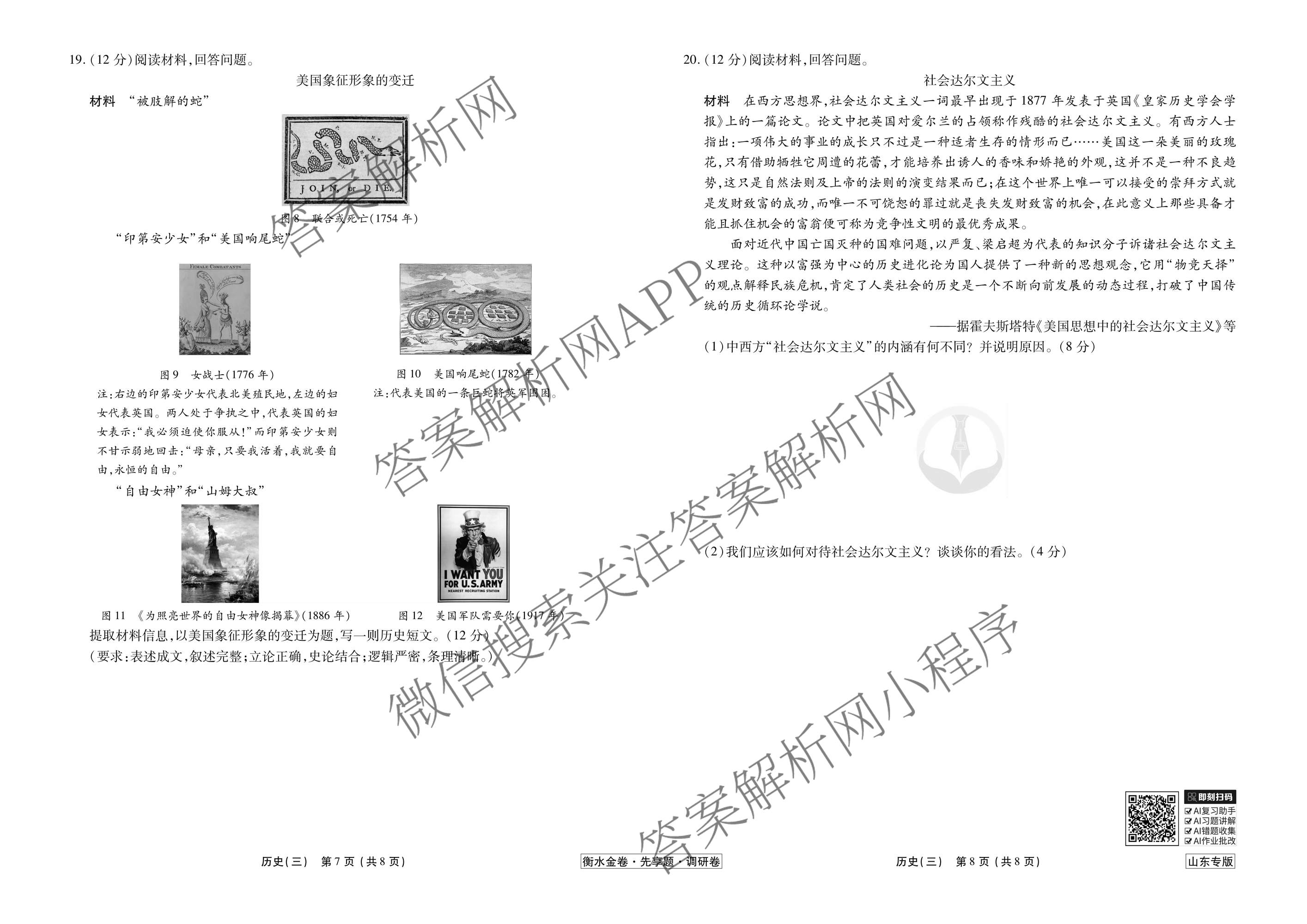 - (衡水金卷先享题)·调研卷·2026年普通高中学业水平等级考试模拟试题(三)3历史(山东专版)答案