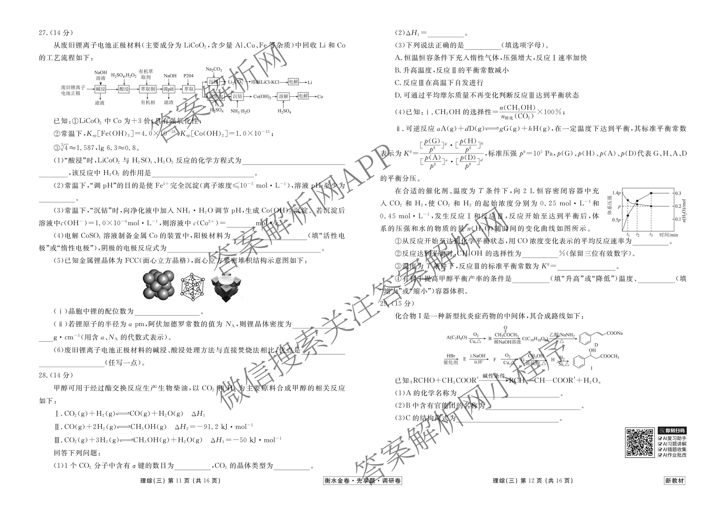- [衡水金卷先享题]调研卷2026年普通高中学业水平选择性考试模拟试题(三)3化学(AH)答案
