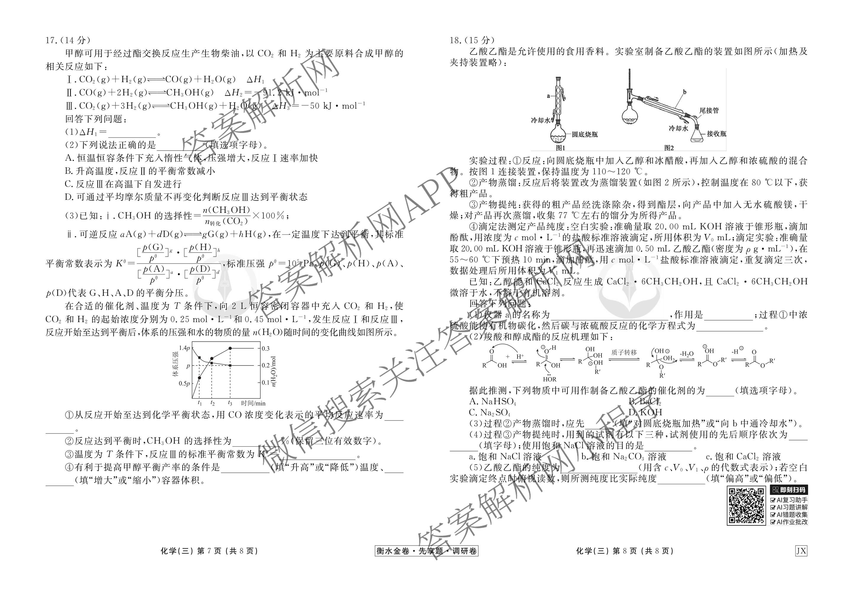 - [衡水金卷先享题]调研卷2026年普通高中学业水平选择性考试模拟试题(三)3化学(AH)答案