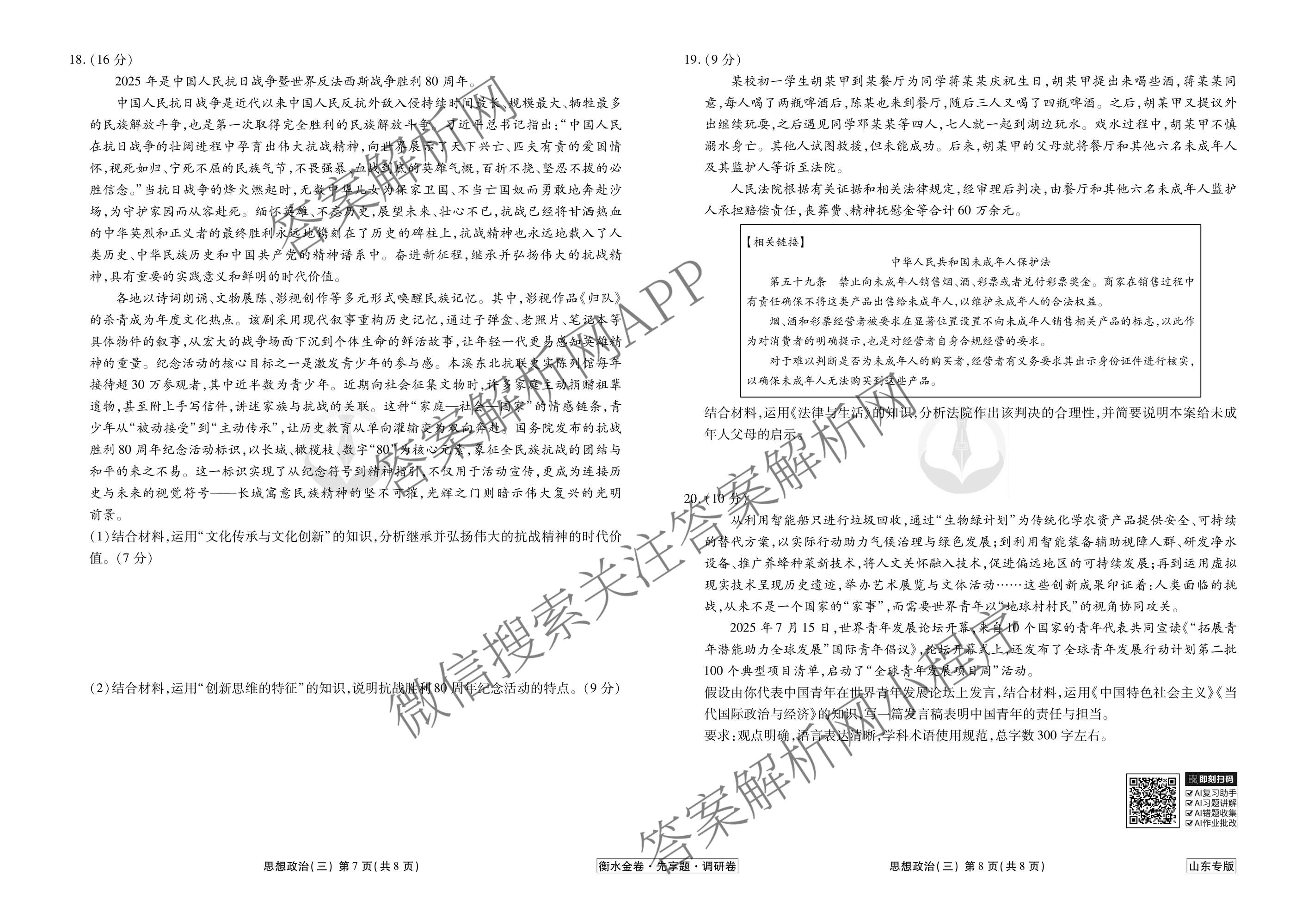 - (衡水金卷先享题)调研卷2026年普通高中学业水平选择性考试模拟试题(三)3政治(AH)答案