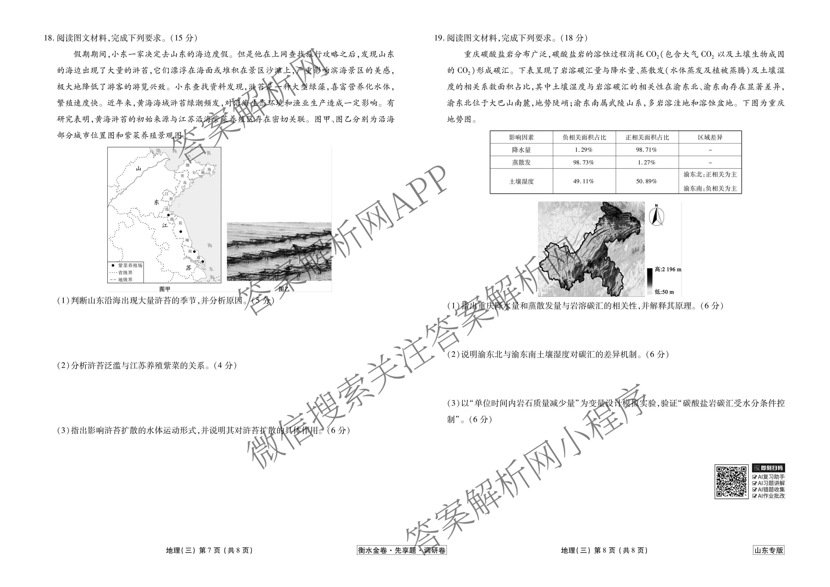 - (衡水金卷先享题)调研卷2026年普通高中学业水平等级考试模拟试题(三)3地理(山东专版)答案