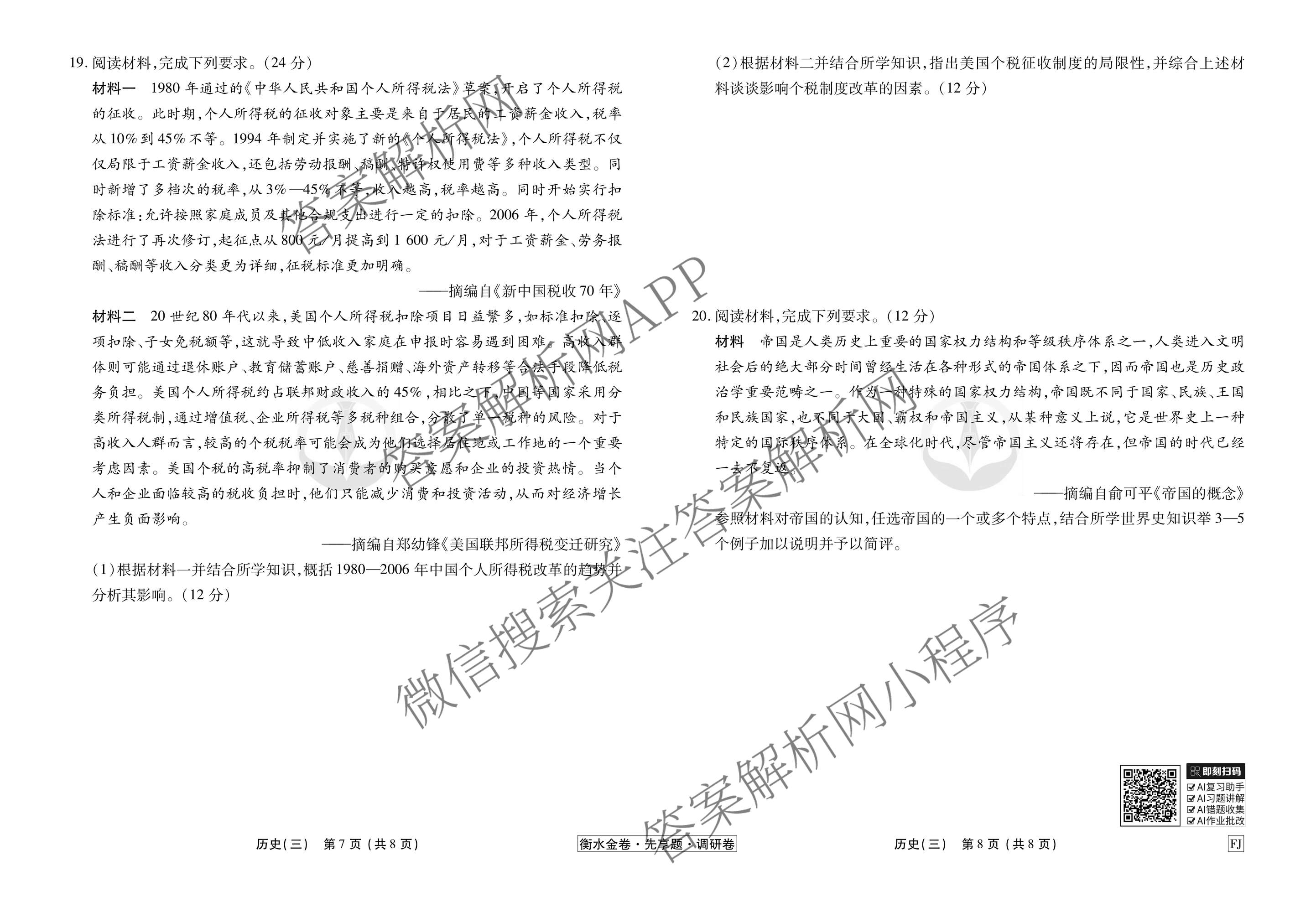 衡水金卷先享题·调研卷·2026年普通高中学业水平选择性考试模拟试题(三)3历史(FJ)试题,目前衡水金卷先享题答案网已经汇总了衡水金卷先享题·调研卷·2026年普通高中学业水平选择性考试模拟试题(三)3历史(FJ)试题的各科答案和试卷,获取更多衡水金卷先享题答案解析,请在关注本站。