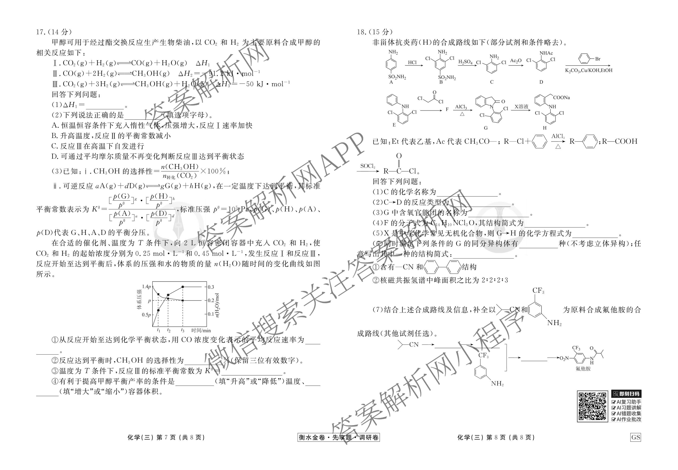 - [衡水金卷先享题]调研卷2026年普通高中学业水平选择性考试模拟试题(三)3化学(AH)答案